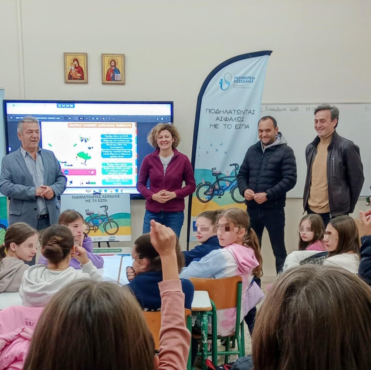 Ο Αντιπεριφερειάρχης κ. Καναβός παρουσίασε στους μαθητές της Ε’ και Στ’ έργα και παρεμβάσεις χρηματοδοτούμενες από το ΕΣΠΑ στην περιοχή. «Ως Περιφερειακή Αρχή έχουμε δεσμευτεί να προωθήσουμε το ποδήλατο ως μέσο μεταφοράς, αναγνωρίζοντας την συμβολή του ποδηλάτου τόσο στο περιβάλλον, όσο και στην προσωπική μας υγεία. Αξιοποιώντας πόρους του προγράμματος ΕΣΠΑ «Θεσσαλία 2021-2027″ και υλοποιώντας μια σειρά από έργα που προάγουν την βιώσιμη κινητικότητα, αναλαμβάνουμε δράσεις ενημέρωσης και ευαισθητοποίησης τόσο των μαθητών όπως με το συγκεκριμένο πρόγραμμα, όσο και των πολιτών γενικότερα» δήλωσε χαρακτηριστικά.