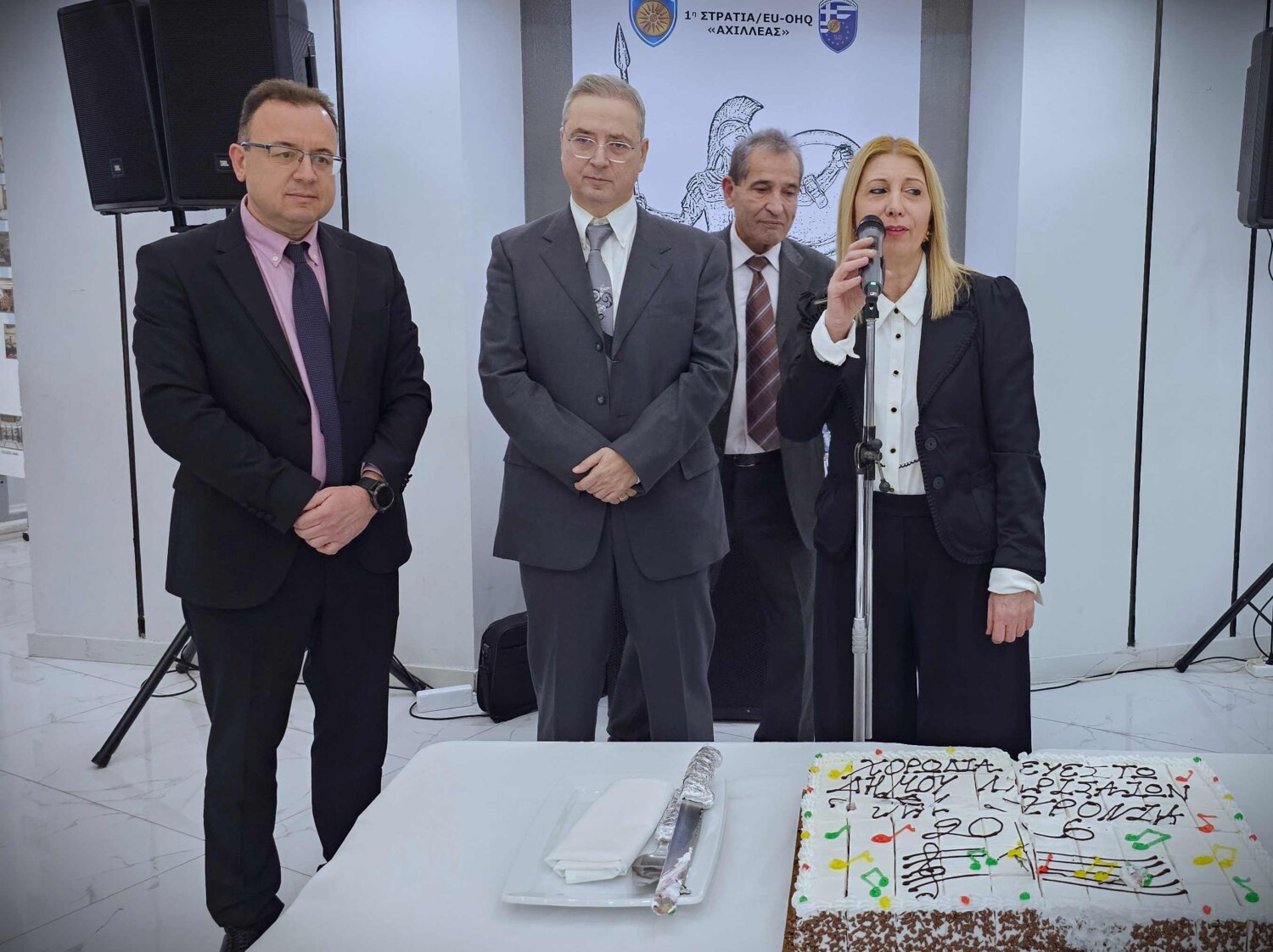 Στο χαιρετισμό της η νέα αντιδήμαρχος κα Ευριδίκη Γούλα μεταφέροντας τις ευχές του Δημάρχου Λαρισαίων κου Αθανασίου Μαμάκου, οποίος απουσίαζε σε αποστολή στο εξωτερικό, ευχήθηκε σε όλους υγεία και ευτυχία για τη νέα χρονιά, επαίνεσε το ζήλο των χορωδών και του μαέστρου για την ανάπτυξη της χορωδιακής πολυφωνικής μουσικής και δήλωσε την έμπρακτη συμπαράσταση και υποστήριξη της δημοτικής αρχής στις δράσεις της χορωδίας.
