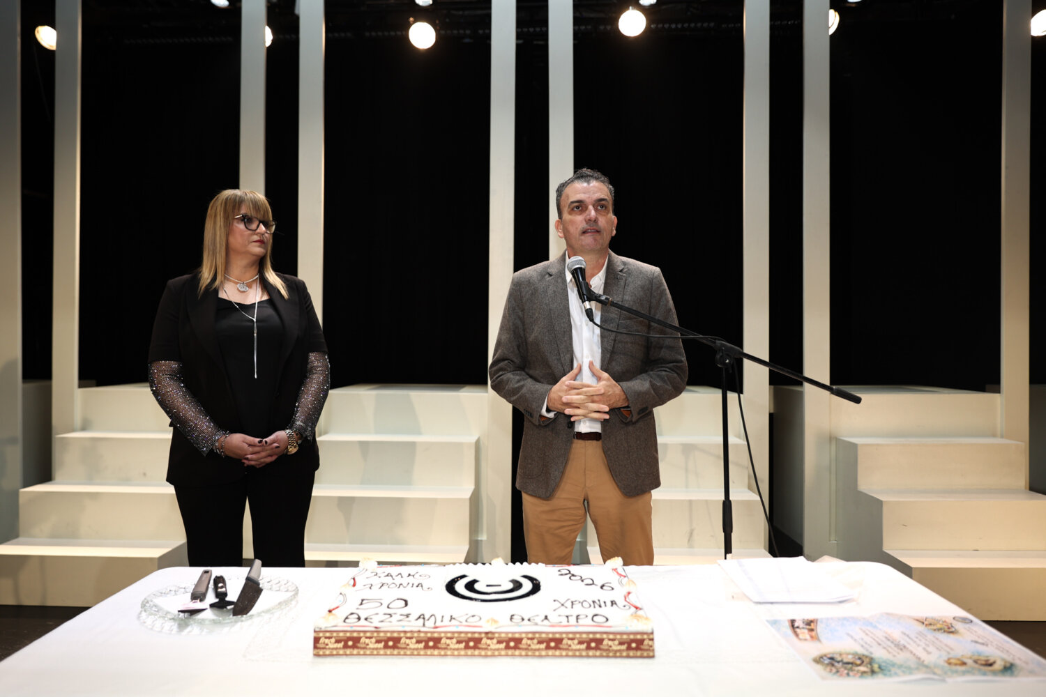 Από την πλευρά του ο κ. Θανάσης Μαμάκος δήλωσε χαρούμενος που είναι κατάμεστο το θέατρο, «ένας βασικός πυλώνας πολιτισμού στην πόλη μας. Με βλέμμα στραμμένο στο μέλλον, το Θεσσαλικό Θέατρο επιβεβαιώνει πως παραμένει ζωντανό, ενεργό και ανήσυχο, συνεχίζοντας να υπηρετεί την τέχνη του θεάτρου με συνέπεια, τόλμη και κοινωνική ευαισθησία».