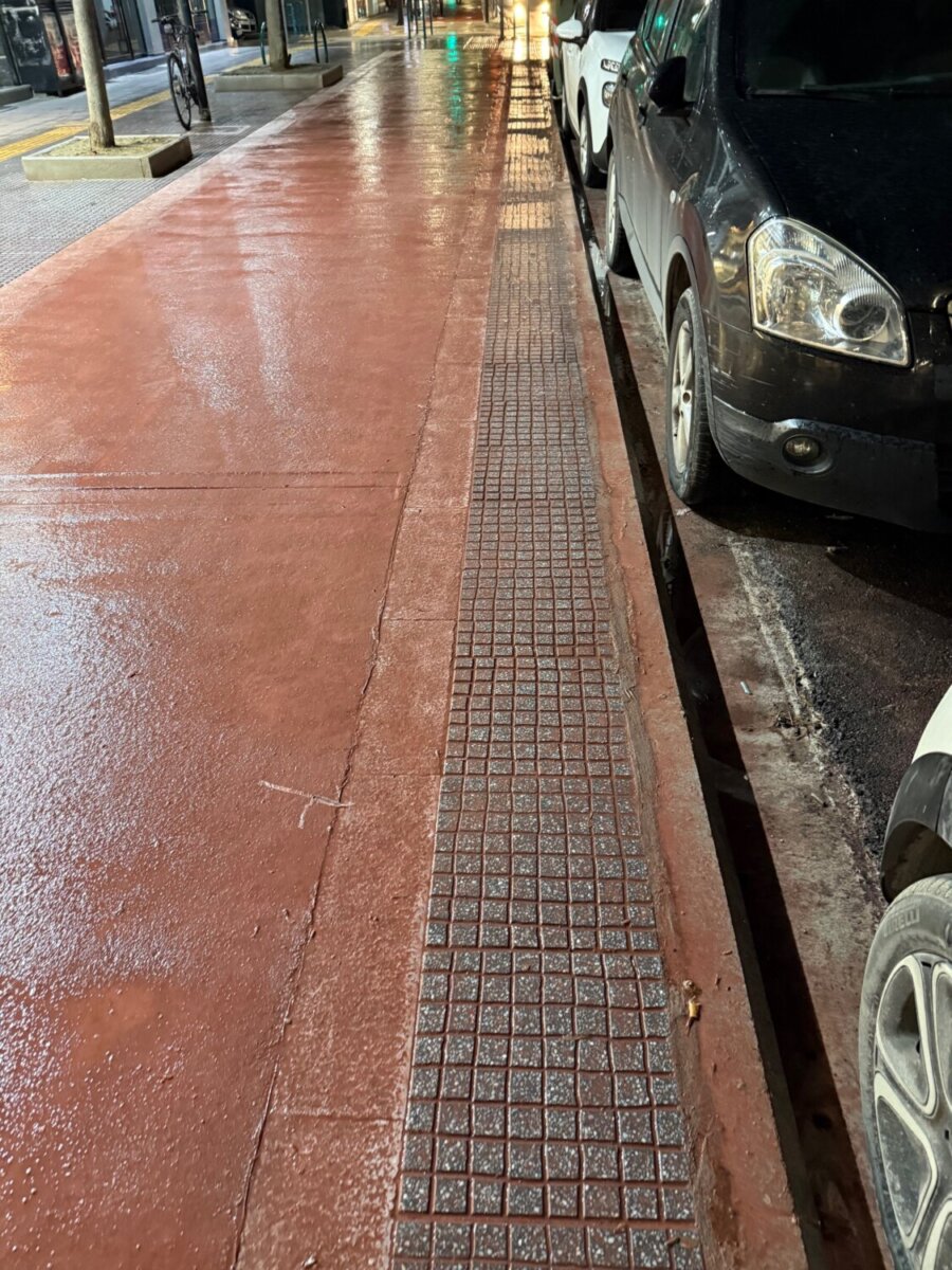 «Όπως βλέπετε και στις παρακάτω φωτό που είναι από το τελευταίο τμήμα που παραδόθηκε στην Ανθίμου Γαζη κάτι δεν έχει πάει καλά στην κατασκευή. Τα μάρμαρα, οι πλάκες αλλά και όλος ο δρόμος έχουν κοκκινίσει.