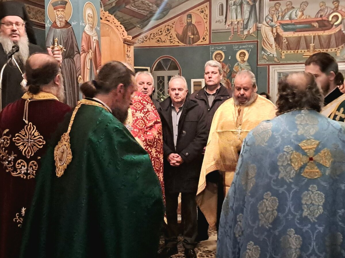 Μετά το πέρας του Πανηγυρικού Εσπερινού, ο Δήμαρχος Τεμπών αντάλλαξε ευχές με τους παρευρισκόμενους πιστούς.