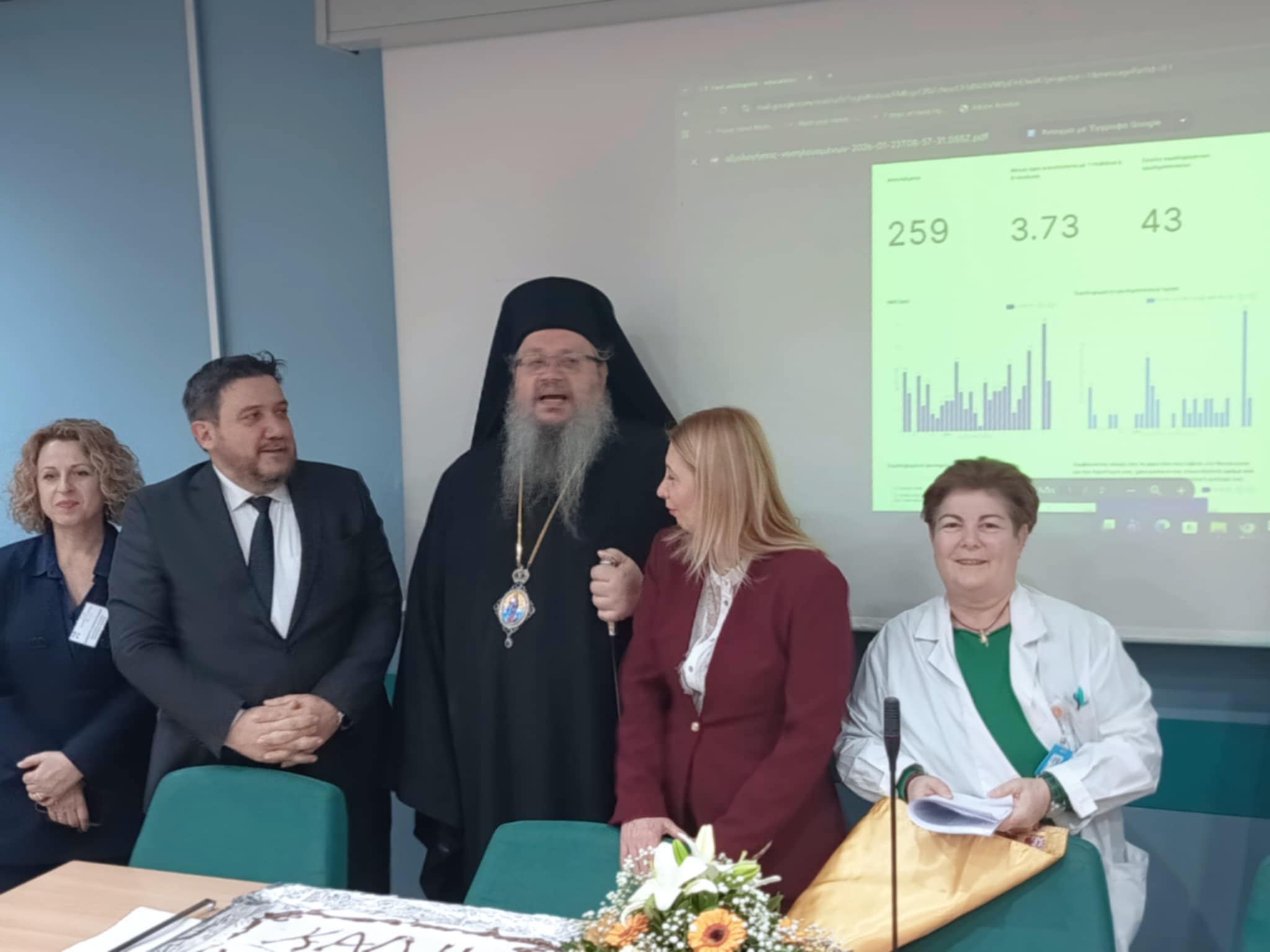 Ο Σεβασμιότατος ευλόγησε και έκοψε την βασιλόπιτα και απηύθυνε τις ευχαριστίες του στο προσωπικό του Νοσοκομείου, ως ένδειξη σεβασμού στο ρόλο και στο έργο τους.