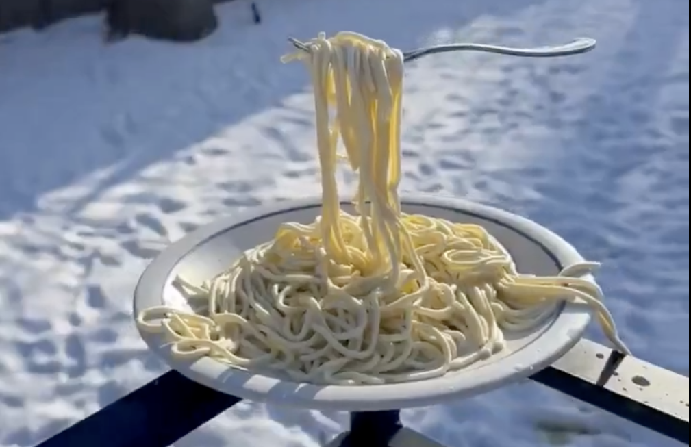 FROZEN SPAGHETTI 🍝: Pasta freezes in midair as Minneapolis reaches a low of -21 degrees and a wind chill of -45 degrees on Friday. pic.twitter.com/6m8srLxPZa
