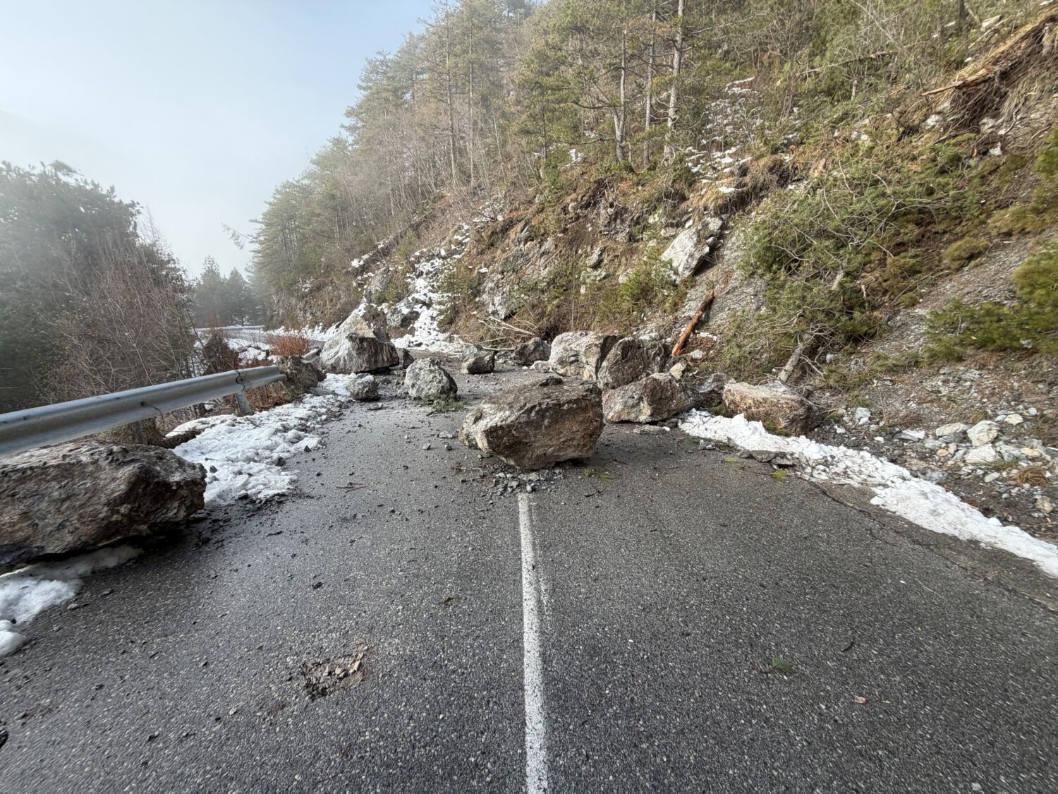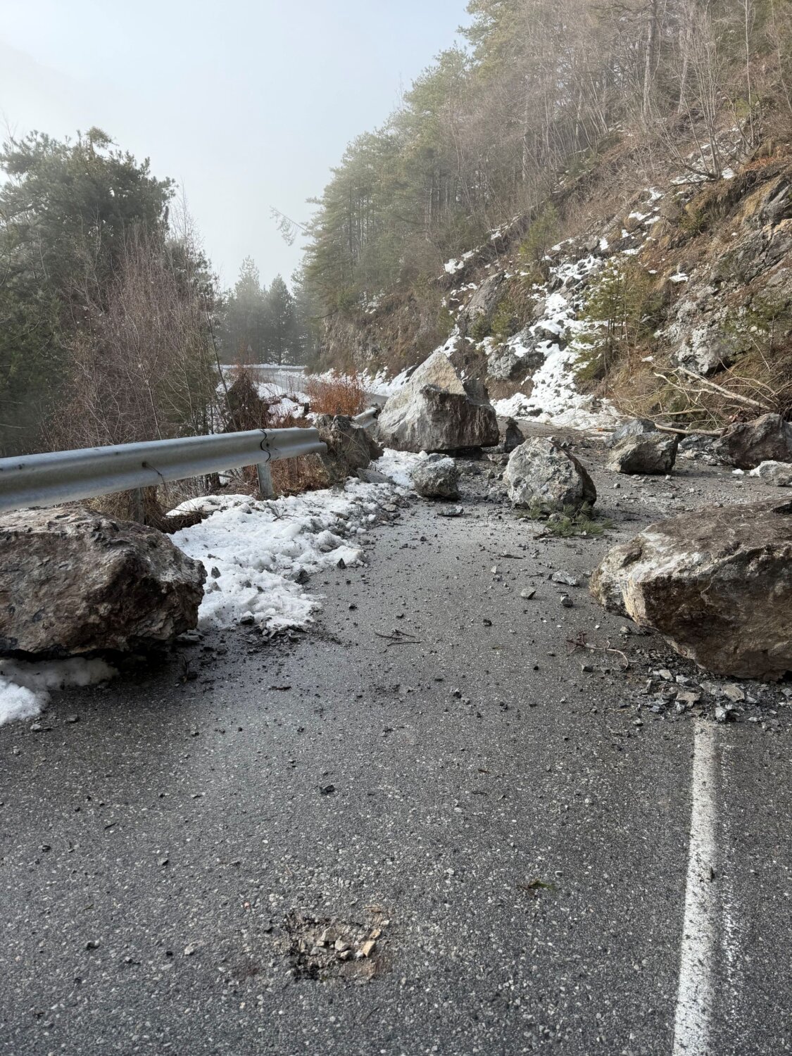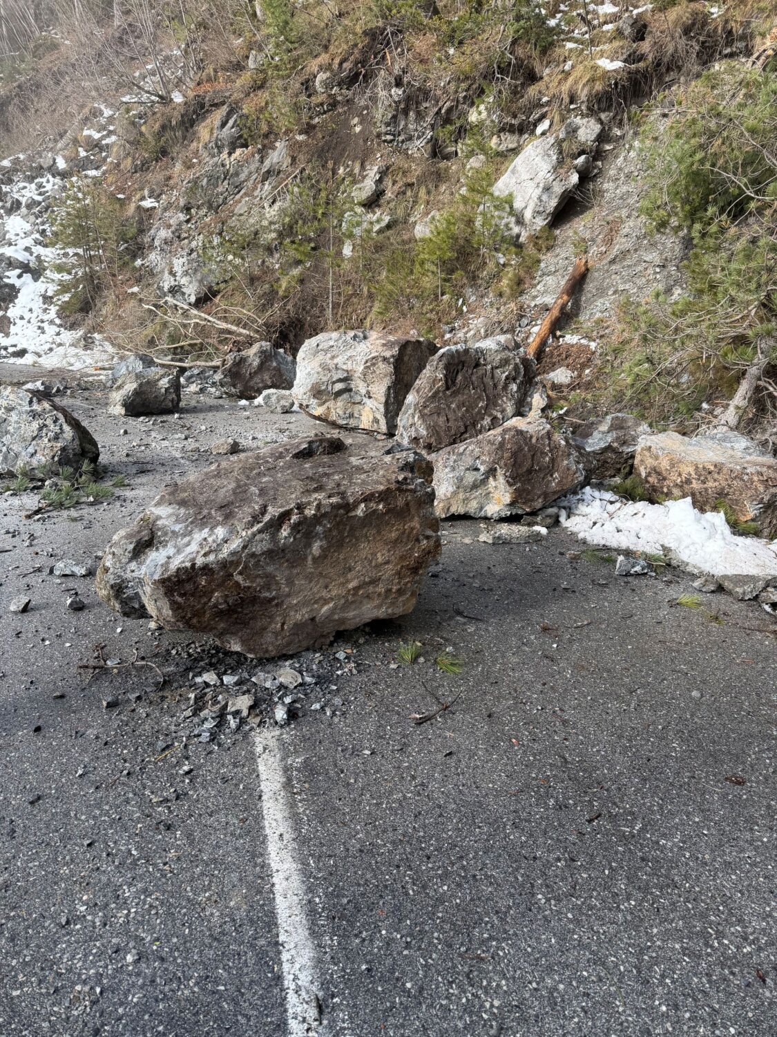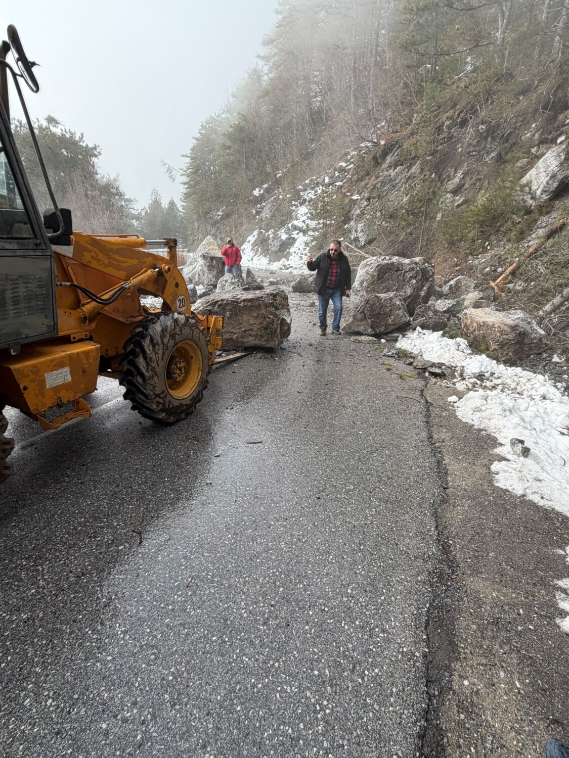 Οι βράχοι απομακρύνθηκαν σήμερα το πρωί από συνεργείο του τμήματος Πολιτικής Προστασίας του Δήμου Δίου-Ολύμπου, ωστόσο επειδή το φαινόμενο βρίσκεται σε εξέλιξη ο δρόμος μετά την Γκορτσιά προς τα Πριόνια θα παραμείνει κλειστός για την ασφάλεια των επισκεπτών (πεζών και οδηγών) στο σημείο εκείνο.