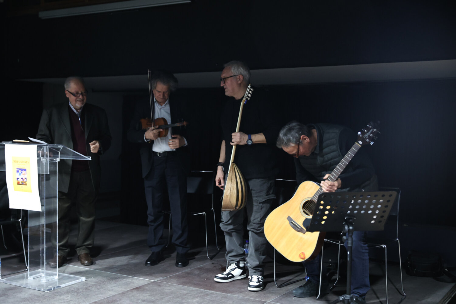 Η εκδήλωση ολοκληρώθηκε με μουσικό πρόγραμμα από το σχήμα «Ήχος Γηγενής», με τους Θανάση Ζιώζια (βιολί), Στάθη Σταμελόπουλο (μπουζούκι) και Βασίλη Σελήνη (κιθάρα), ενώ ο Παύλος Λάλος ερμήνευσε τραγούδια. Ακούστηκαν μελοποιημένα ποιήματα από το βιβλίο, καθώς και επιλεγμένα έντεχνα και παραδοσιακά τραγούδια, κλείνοντας τη βραδιά σε μια ατμόσφαιρα συγκίνησης και δημιουργικού διαλόγου ανάμεσα στην ποίηση και τη μουσική.