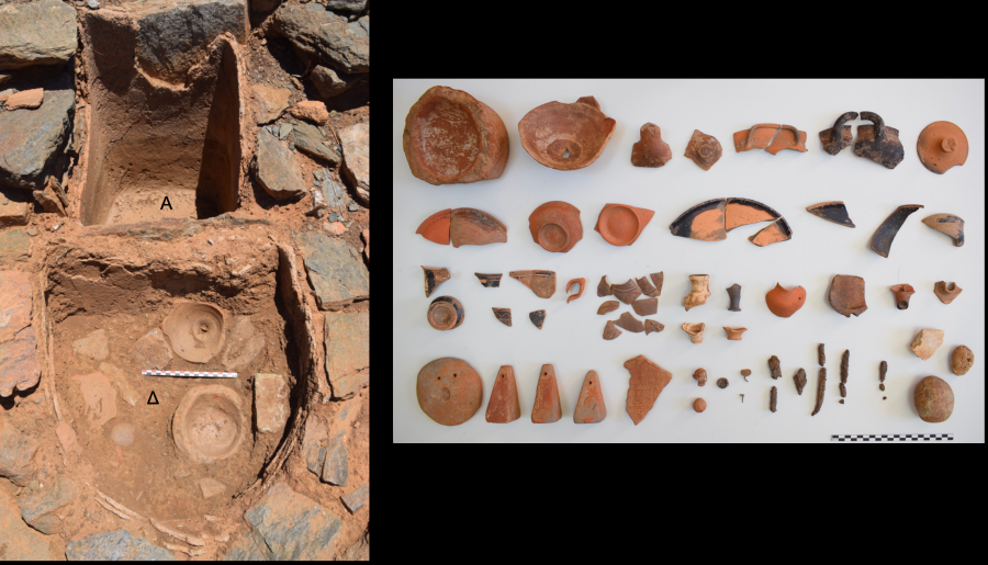 Κατά τη φετινή περίοδο ολοκληρώθηκε η ανασκαφή του δυτικού τμήματος του τελετουργικού Κτιρίου 3 του ιερού, αποκαλύπτοντας, όπως και τα προηγούμενα χρόνια, μεγάλο αριθμό πήλινων ειδωλίων και λύχνων, χρονολογούμενων από τους αρχαϊκούς έως τους ελληνιστικούς χρόνους. Παράλληλα, σε χαμηλότερο σημείο της πλαγιάς της Ακρόπολης, δυτικά του κτιρίου, η δοκιμαστική έρευνα επιβεβαίωσε την ύπαρξη ιδιαίτερα πυκνής συγκέντρωσης κεραμεικής – κυρίως υδριών, αρκετές από τις οποίες βρέθηκαν σχεδόν ακέραιες. Η φύση της συγκέντρωσης διερευνάται περαιτέρω, καθώς παραμένει ανοιχτό το ενδεχόμενο είτε πρόκειται για αποθέτη του ιερού είτε για δευτερογενή μετακίνηση ευρημάτων λόγω διάβρωσης.