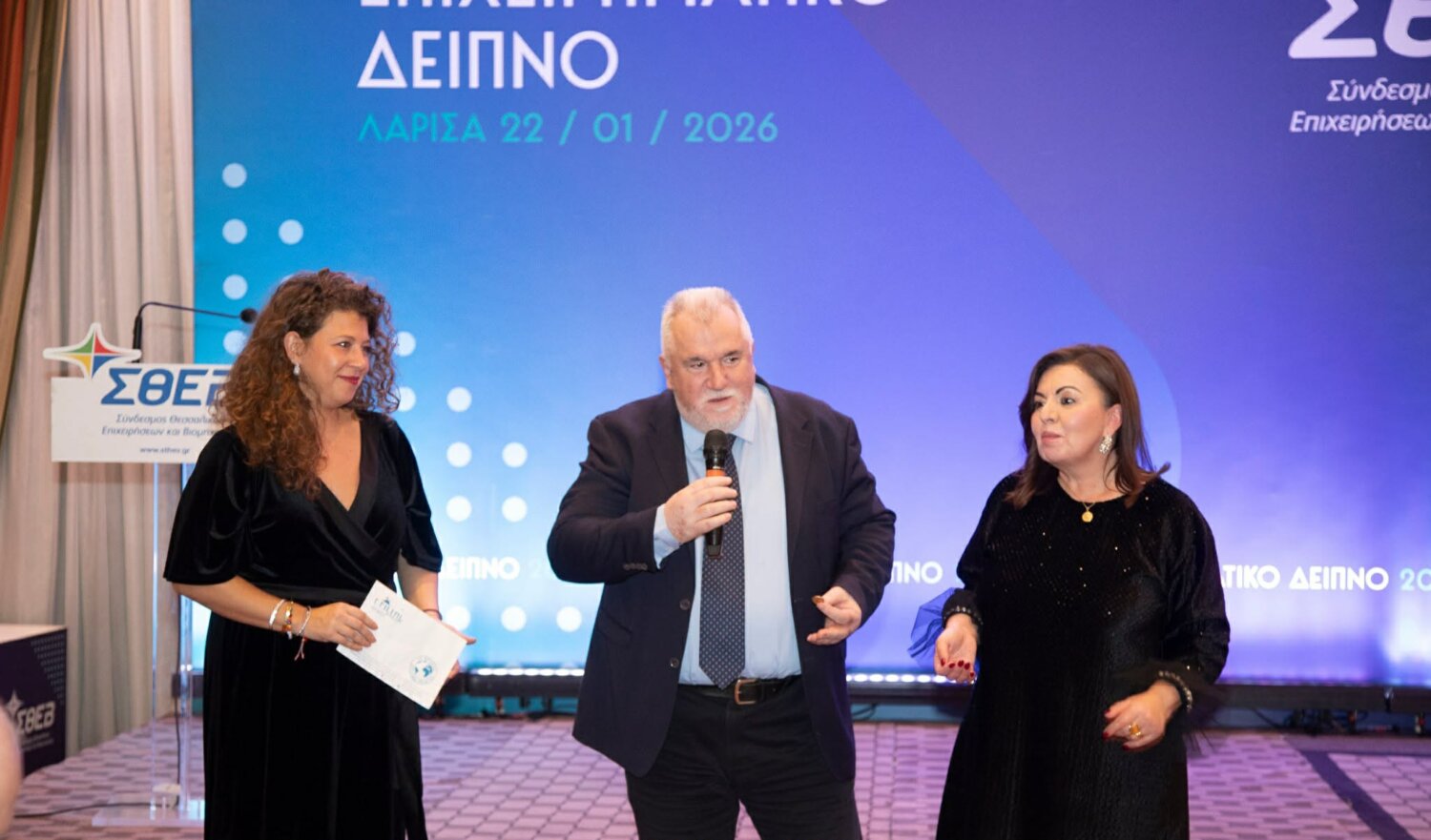 Στο επιχειρηματικό δείπνο του Συνδέσμου Θεσσαλικών Επιχειρήσεων και Βιομηχανιών (ΣΘΕΒ), που συντόνιζε η διευθύντρια του Συνδέσμου κα Έλενα Καματέρη έγινε και η κοπή της παραδοσιακής βασιλόπιτας στο ξενοδοχείο LARISSA IMPERIAL.