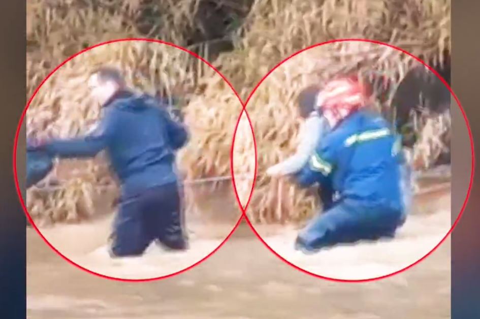 Με σκοινί άνδρες της Πυροσβεστικής απεγκλώβισαν το ζευγάρι. Σοκαρισμένοι οι διασωθέντες μεταφέρθηκαν προληπτικά στο Κέντρο Υγείας της περιοχής.