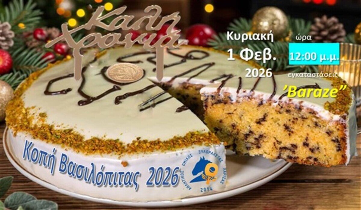 Το Διοικητικό Συμβούλιο του Αθλητικού Ομίλου Ξυλορακέτας Λάρισας (Α.Ο.Ξ. ΛΑΡΙΣΑΣ), όπως επισημαίνεται σε σχετική ανακοίνωση «έχει την τιμή και προσκαλεί στην επίσημη εκδήλωση κοπής της Βασιλόπιτας, εκπρόσωπους των τοπικών αρχών, τα μέλη, αθλήτριες και αθλητές του με τις οικογένειές τους και τους φίλους τους, καθώς και φίλους μας αθλητικών σωματείων.