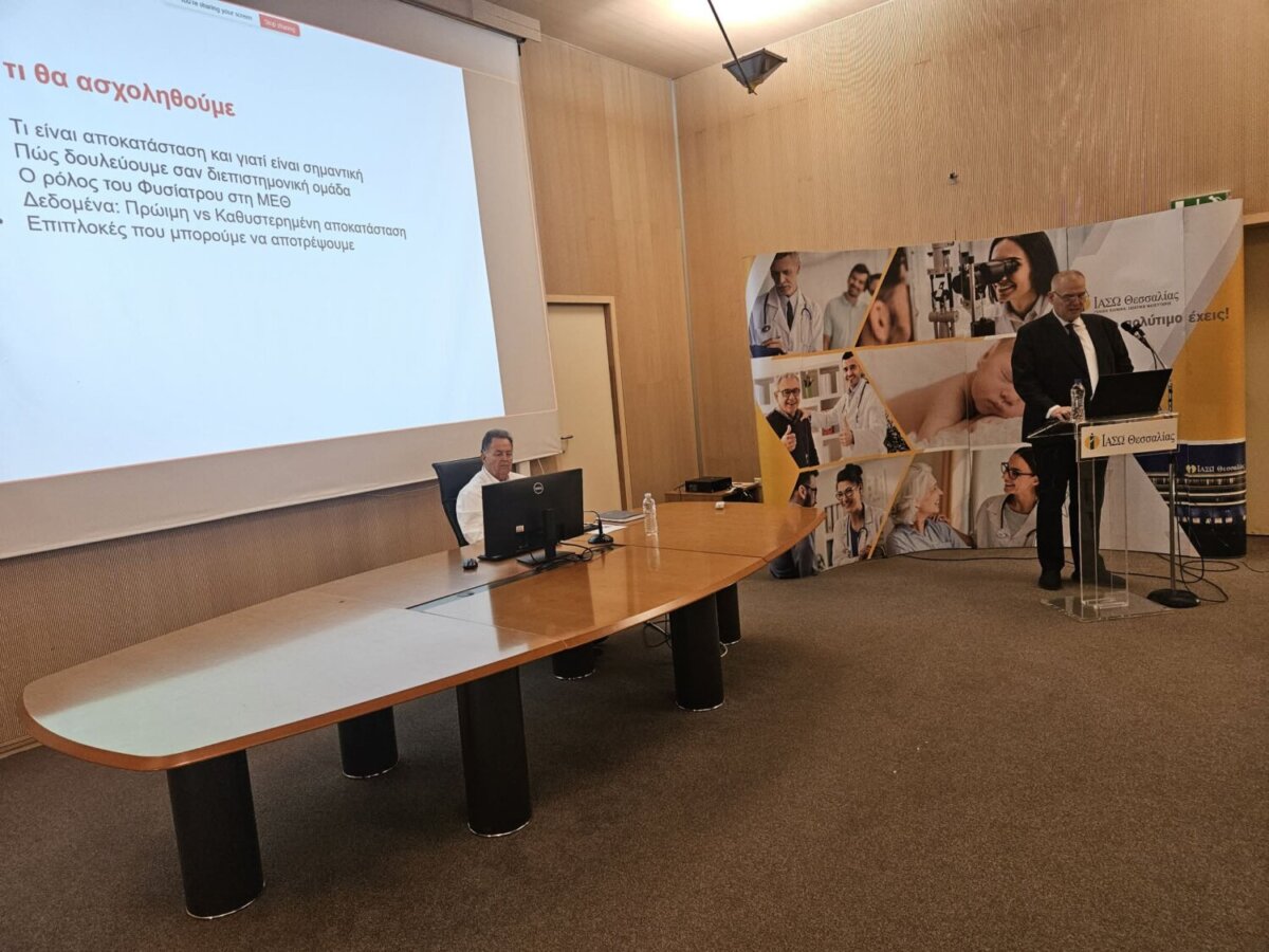 Με επίκεντρο τις σύγχρονες επιστημονικές εξελίξεις πραγματοποιήθηκε επιστημονική διάλεξη στο πλαίσιο του ετήσιου κύκλου «Επιστημονικές Διαλέξεις 2025–2026» του ΙΑΣΩ Θεσσαλίας, με θέμα «Αποκατάσταση βαρέως πασχόντων», αναδεικνύοντας τον κρίσιμο ρόλο της πρώιμης και οργανωμένης ιατρικής αποκατάστασης στη Μονάδα Εντατικής Θεραπείας.