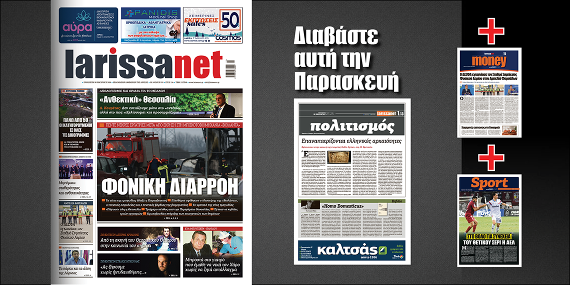 Ρεπορτάζ, άρθρα, συνεντεύξεις και όλο το παρασκήνιο της εβδομάδας στο νέο φύλλο της larissanet.