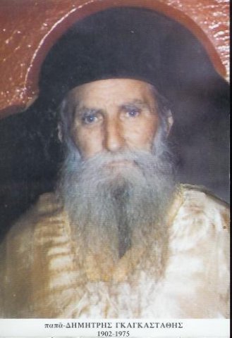 ΣΚΟΛΩΨ ΤΗ ΣΑΡΚΙ: Από το τέλος της δεκαετίας του ’60 ο Θεός έστειλε ασθένειες στον ταπεινό του δούλο, παπα-Δημήτρη. Διαγνώστηκε καρκίνος και τον Φεβρουάριο του 1970 υπεβλήθη σε εγχείριση στον ΕΥΑΓΓΕΛΙΣΜΟ. Θαύμα μεγάλο και ζωντανό έγινε. Γράφει ο ίδιος σε επιστολή του « Οι ιατροί του ΕΥΑΓΓΕΛΙΣΜΟΥ μου το ανήγγειλαν καθαρά το πικρό φιρμάνι. Εγώ εδόξαζα τον Θεόν, που μου έδωκε αυτό το μεγάλο δώρον, τον καρκίνον, για να με δοκιμάσει……Η εγχείρισις κράτησε 5 ώρες……. Τις επόμενες ημέρες είχα μία διάθεση που μου ερχόταν να κατέβω από το κρεββάτι. Δεν αισθανόμουν τίποτα……… Το βράδυ, που έφυγε η κόρη μου και έμεινα μόνος, ήλθαν δύο άγνωστοι και με φύλαγαν και με ανακούφιζαν…….. Χαρά Θεού και ευλογία Θεού εκείνο το βράδυ, που δεν μπορώ να περιγράψω. Ολοι εθαύμασαν πως έζησα….» Επέστρεψε και πάλιν ο μακάριος γέροντας στο χωριό του και στις λειτουργίες του. Η υγεία του πλέον, όμως, είχε γίνει πολύ εύθραυστη. Το 1973 νοσηλεύθηκε στο νοσοκομείο ΑΛΕΞΑΝΔΡΑΣ για «ανώτερες σπουδές», όπως έλεγε χαριτολογώντας. Ο Θεός προετοίμαζε τον δούλο του. Στις 29 Ιανουαρίου, 1975, μετά πολύμηνους φρικτούς πόνους ο Θεός τον δέχθηκε. «Όταν βρώ εκεί θέσιν, τότε θα έρχωμαι και θα σας βοηθώ. Αμ, πώς! Θα ξεχάσω τα πνευματικά μου παιδιά ; » έλεγε λίγο προ της κοιμήσεως του.