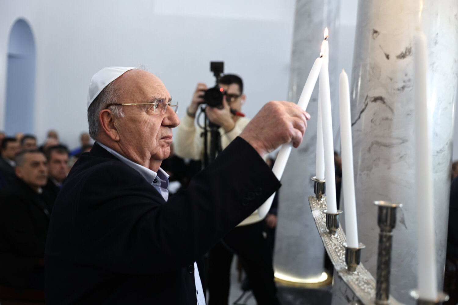 Σήμερα το απόγευμα, η Ιερά Συναγωγή Λάρισας «Ετς Χαγίμ» γέμισε από συγκίνηση και σεβασμό, καθώς πραγματοποιήθηκε η τελετή αφής των κεριών στη μνήμη των 6.000.000 Εβραίων θυμάτων του Ολοκαυτώματος.