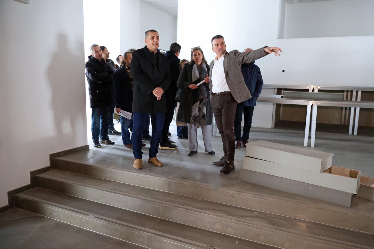Κατά την ξενάγηση που πραγματοποίησε η επιβλέπουσα μηχανικός του Δήμου κα Σοφία Ρωμανάσου, οι κ.κ. Κουρέτας, Μαμάκος ενημερώθηκαν ότι αυτή τη στιγμή πραγματοποιούνται εργασίες στην αίθουσα των θεατών, που είναι πολύ κομβικές για το κτίριο, καθώς μετά την ολοκλήρωσή τους θα επιτραπεί να προχωρήσουνε τα συνεργία στις λοιπές εργασίες. Οι τρέχουσες ηλεκτρομηχανολογικές εργασίες αφορούν στο θόλο της αίθουσας των θεατών, ο οποίος θα καλυφθεί με ξύλινη επένδυση με την αποπεράτωσή τους.