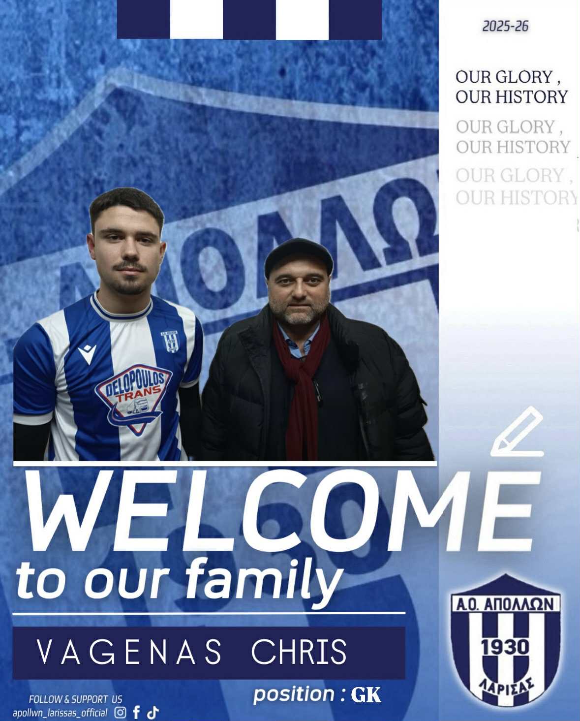 Ο Απόλλων Λάρισας βρίσκεται στην ευχάριστη θέση να ανακοινώσει την απόκτηση του Χρήστου Βαγενά.