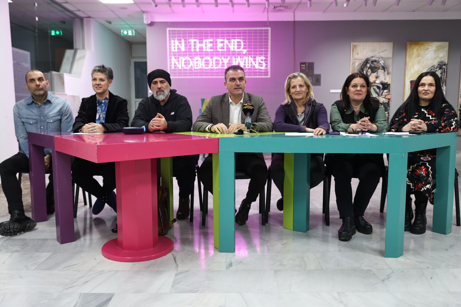 Το πρωί της Παρασκευής, στη νέα αίθουσα πραγματοποιήθηκε συνέντευξη Τύπου, παρουσία του Δημάρχου Λαρισαίων και προέδρου της Δημοτικής Πινακοθήκης Λάρισας – Μουσείου Γ. Ι. Κατσίγρα, Αθανάσιου Μαμάκου, της αντιπροέδρου, Άννυς Αρχιμανδρίτου, όπως και των Λαρισαίων εικαστικών, Ελένη Καλαμπαλίκη, Γιάννη Πέτρου, Θεοδώρα Τσιάτσιου και της επιμελήτριας, Δρ ιστορικός της τέχνης, Νικολέτα Τζάνη.