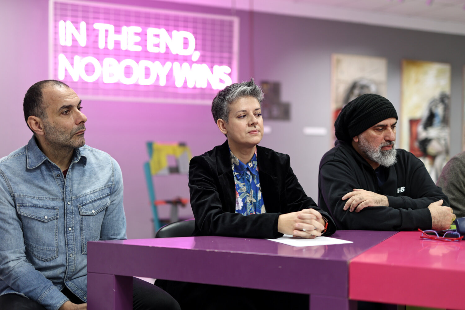 «Δημιουργήθηκε ένα πολύ ενδιαφέρον πεδίο συνομιλίας μεταξύ μας», ανέφερε ο κ. Πέτρου και συνέχισε λέγοντας ότι «είμαι πολύ τυχερός που την εποχή του ΑΙ μπορούμε να δείχνουμε τη δουλειά μας χρησιμοποιώντας τα χέρια μας και υλικά δημιουργώντας προβληματισμούς προς το κοινό».