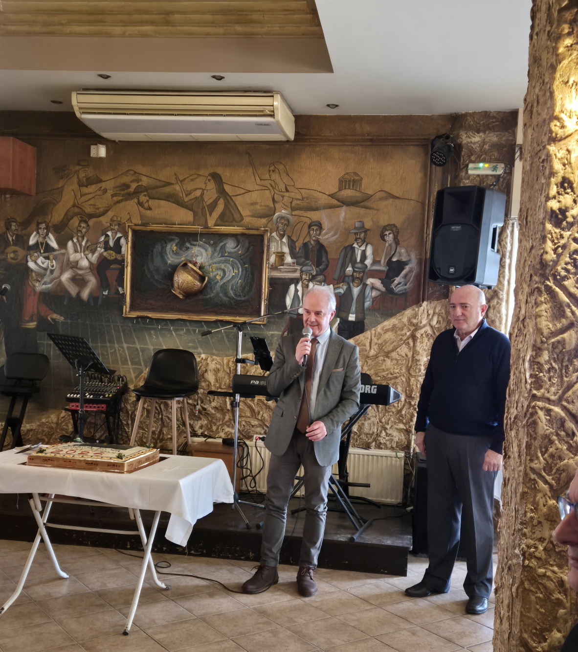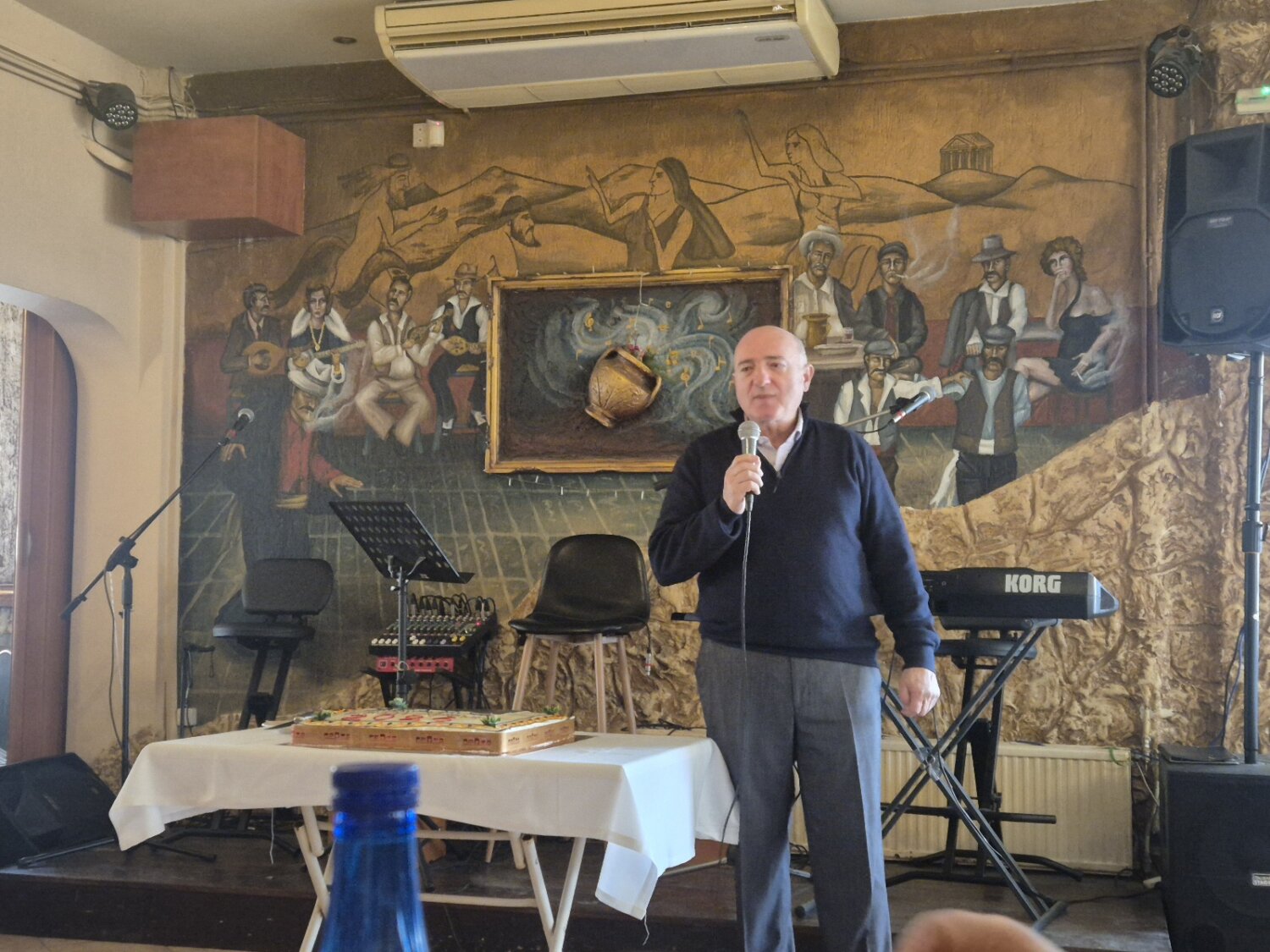 Στη συνέχεια, ο Πρόεδρος κάλεσε τον Δήμαρχο Τεμπών, κ. Γιώργο Μανώλη, ο οποίος στον σύντομο χαιρετισμό του συνεχάρη τη διοίκηση και τα μέλη του συλλόγου για την ενεργή και ουσιαστική παρουσία τους στα πολιτιστικά και κοινωνικά δρώμενα της περιοχής. Παράλληλα, τόνισε τη σημασία του εθελοντισμού, της προστασίας του φυσικού περιβάλλοντος και της αγαστής συνεργασίας του Δήμου με τους τοπικούς συλλόγους, ευχόμενος μια δημιουργική και γεμάτη επιτυχίες νέα χρονιά.