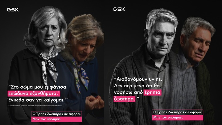 Η εκστρατεία ενημέρωσης και ευαισθητοποίησης της GSK Ελλάδος για τον έρπητα ζωστήρα απευθύνεται στο σύνολο του πληθυσμού και ειδικότερα στα άτομα άνω των 60 ετών και σε ανοσοκατεσταλμένους άνω των 18 ετών, σε όλη την Ελλάδα, μέσω μιας σειράς στοχευμένων ενεργειών. Το κεντρικό μήνυμα της εκστρατείας προβάλλεται μέσα από ένα τηλεοπτικό σποτ, το οποίο αναδεικνύει τα συμπτώματα της νόσου και μεταφέρει την προσωπική εμπειρία ατόμων που έχουν νοσήσει, μέσα από σχετικές μαρτυρίες και αναφορές.