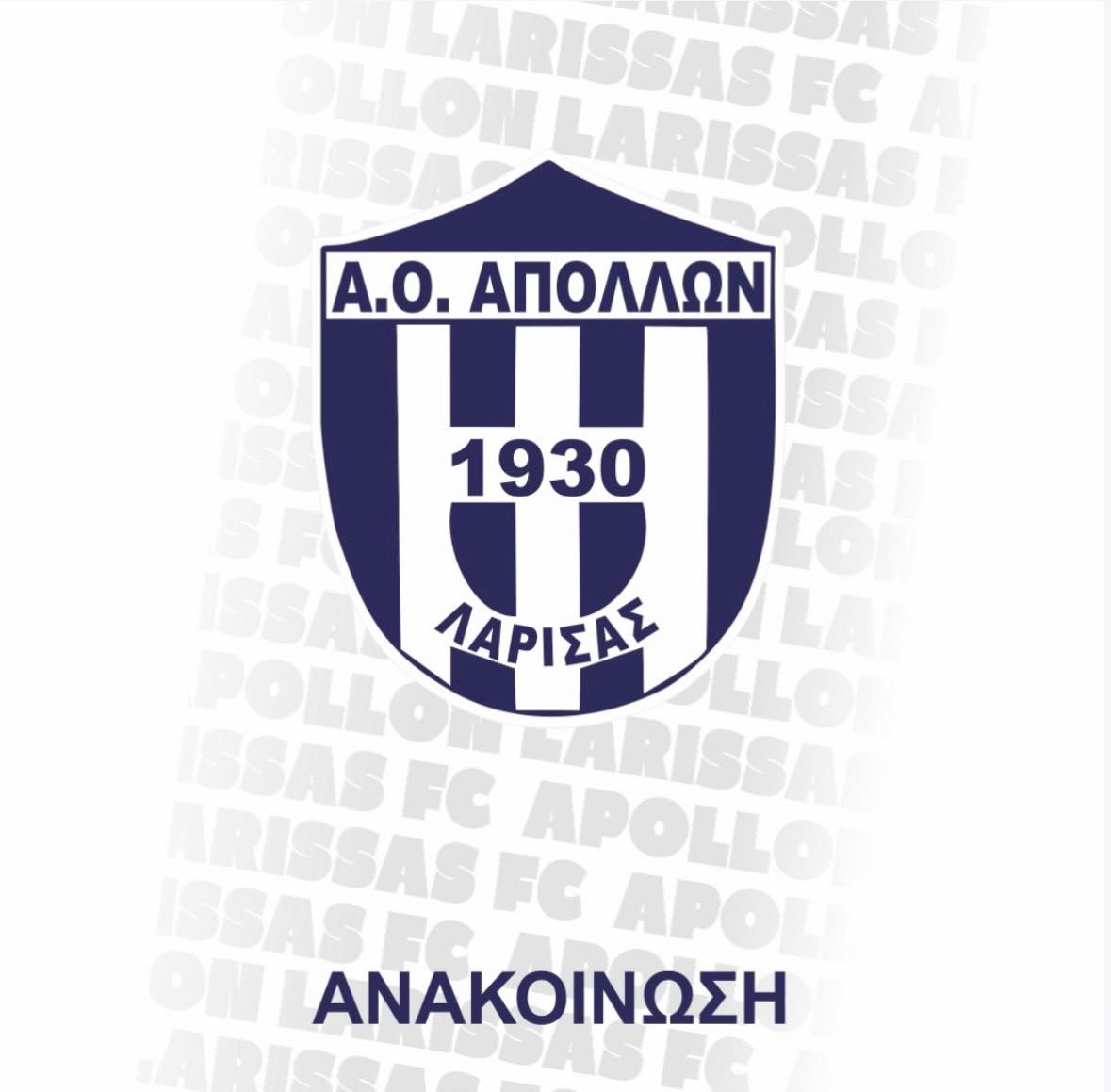Ο Απόλλων Λάρισας γνωστοποιεί πως το Σάββατο 7 Φεβρουαρίου 2026 και ώρα 19:30 θα πραγματοποιηθεί η κοπή της πρωτοχρονιάτικης πίτας του συλλόγου.