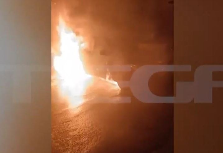 Ο ιδιοκτήτης του οχήματος έντρομος, επιχειρεί με όσα μέσα διαθέτει να σβήσει τη φωτιά από το φλεγόμενο αυτοκίνητό του. Ακολουθεί μία εκκωφαντική και τρομακτική έκρηξη.