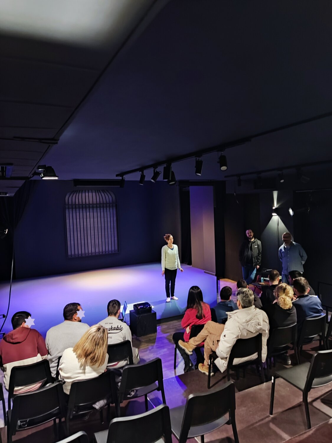 Κατά τη διάρκεια της επίσκεψής τους, οι μαθητές είχαν την ευκαιρία να γνωρίσουν από κοντά τον κόσμο του θεάτρου και της καλλιτεχνικής παραγωγής. Συνομίλησαν με σκηνοθέτη, σκηνογράφο και ηχολήπτη, οι οποίοι τους παρουσίασαν τον ρόλο και τη σημασία κάθε ειδικότητας στη δημιουργία μιας θεατρικής παράστασης. Μέσα από ζωντανό διάλογο και παραδείγματα, οι μαθητές κατανόησαν πώς η συνεργασία όλων των συντελεστών συμβάλλει στο τελικό καλλιτεχνικό αποτέλεσμα.