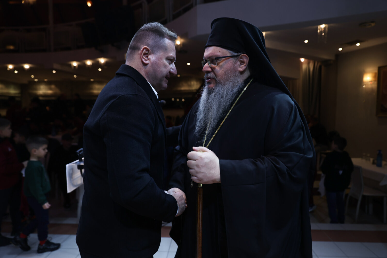 Ιδιαίτερο τόνο έδωσε ο Μητροπολίτης Λαρίσης και Τυρνάβου Ιερώνυμος, ο οποίος, με μια χαρακτηριστική αναφορά, υπογράμμισε τη βαθιά σύνδεση της ομάδας με την πόλη και τον κόσμο της. «Ένα τετράχρονο παιδί μού είπε τα κάλαντα ξεκινώντας με “ΑΕΛ, ΑΕΛ, ΑΕΛ”. Αυτό είναι καλός οιωνός», ανέφερε, τονίζοντας πως η ΑΕΛ χρειάζεται «ψυχραιμία, μέτρο και τα πόδια στη γη», ακόμη και στις επιτυχίες. Παράλληλα, στάθηκε στο ήθος που διαμορφώνεται στον σύλλογο, ιδιαίτερα μέσα από τις Ακαδημίες, επισημαίνοντας ότι «κυριαρχεί η αγάπη για τον τόπο και η ελπίδα για το αύριο», ενώ ευχήθηκε υγεία και ακόμη καλύτερη συνέχεια.