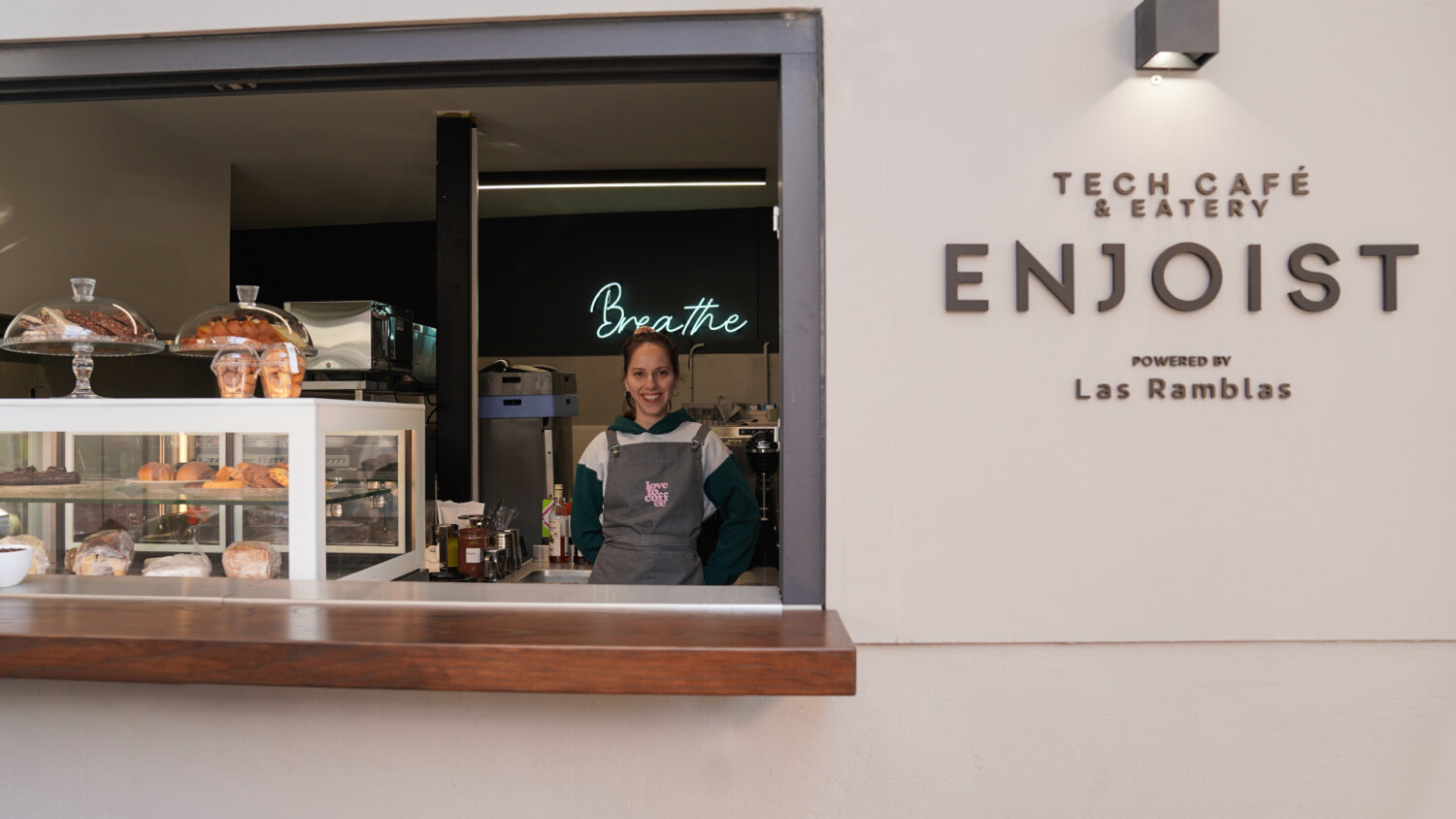 Στον ίδιο χώρο, στεγάζεται και το ENJOIST Tech Cafe + Eatery powered by Las Ramblas. Πρόκειται για έναν φιλόξενο χώρο γευστικών και όχι μόνο εμπειριών, που λειτουργεί ως φυσικό σημείο συνάντησης για το κοινό της πόλης και την ευρύτερη κοινότητα του JOIST.