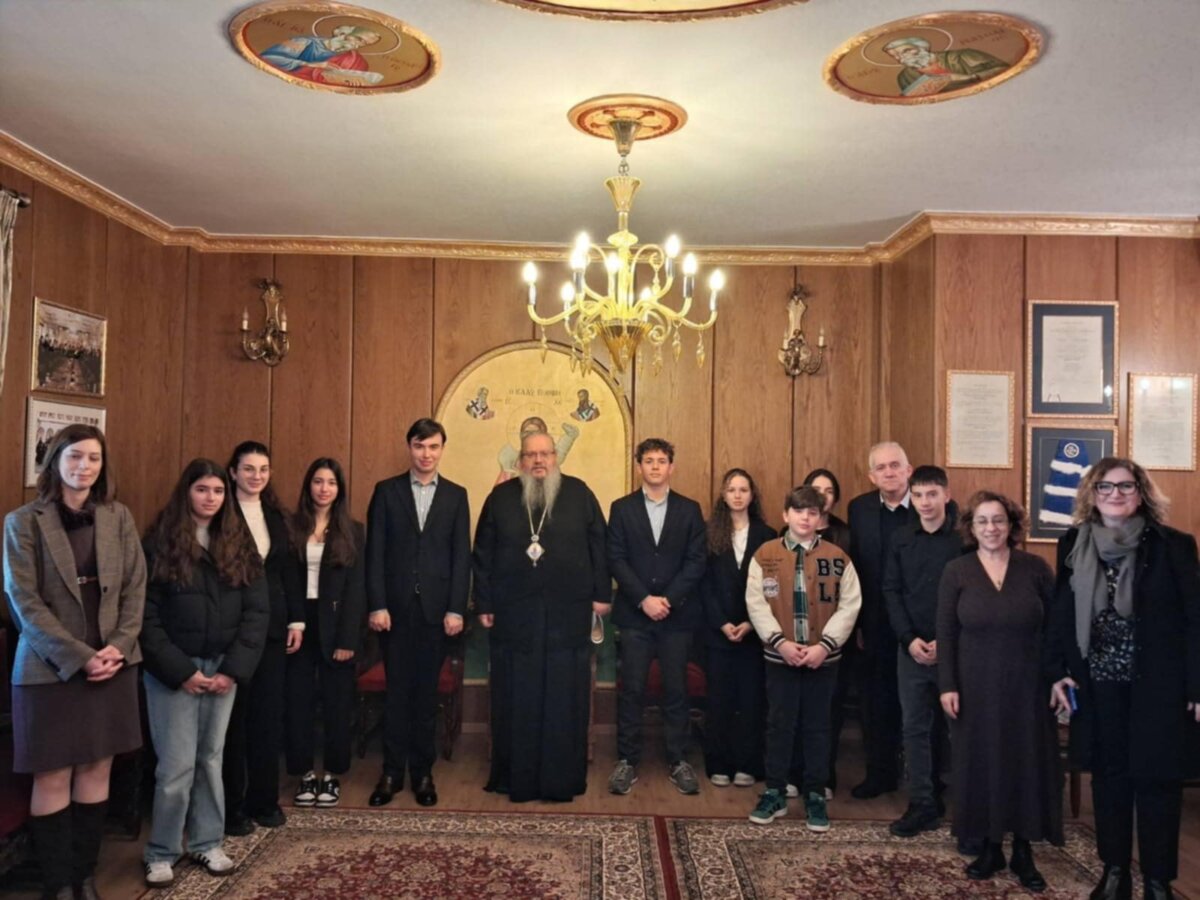 O κ. Ιερώνυμος συνεχάρη τα παιδιά, έδωσε την ευλογία του και μοίρασε τις ευχές του για καλή επιτυχία, καλώντας τους μαθητές-συνέδρους να μεταφέρουν και υποβάλλουν προς τον Παναγιώτατο Οικουμενικό Πατριάρχη κ.κ. Βαρθολομαίο τα σεβάσματά του και τις ευχές για μακροημέρευση στο τιμόνι του Προκαθημένου της Ορθόδοξης Εκκλησίας. Τους μαθητές και τις μαθήτριες συνόδευσαν στο Επισκοπείο ο Διευθυντής του Προτύπου ΓΕΛ Δρ Χαράλαμπος Ανδρεόπουλος (ΠΕ01) και η καθηγήτρια κ. Σοφία Τσιβρανίδου (ΠΕ06) και εκ μέρους του Πειραματικού Γυμνασίου οι καθηγήτριες κ.κ. Ελένη Πετρενίτη (ΠΕ02) και Παρασκευή Μπαζή (ΠΕ03).