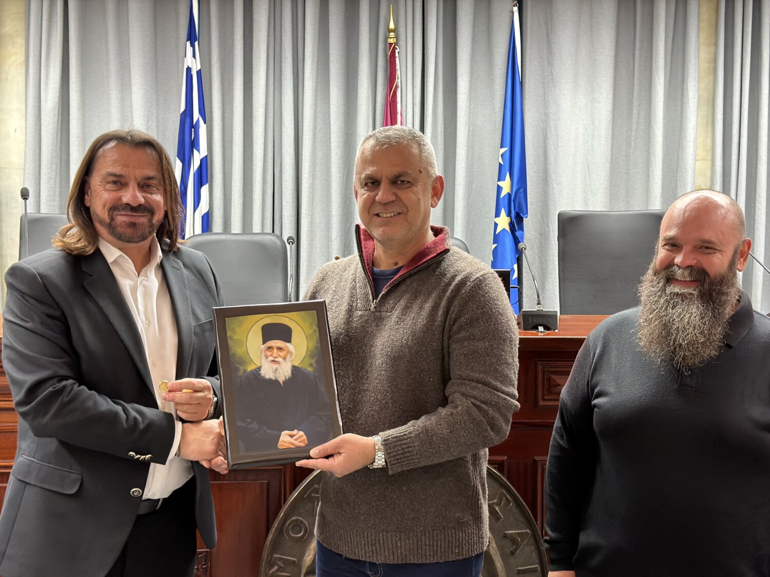 Παρόντα ήταν και τα μέλη της 1ης Κοινότητας: Πρόεδρος Βασίλης Ξηρομερίτης, Αντιπρόεδρος Αργύρης Ντεούδης και τα μέλη Παύλος Νάκος, Δημήτρης Τόσιος, Μάριος Μακρής, Βασίλης Ζήσος, Σοφία Απρίλη, Βάιος Ευαγγέλου και Κώστας Κουμαντζέλης.