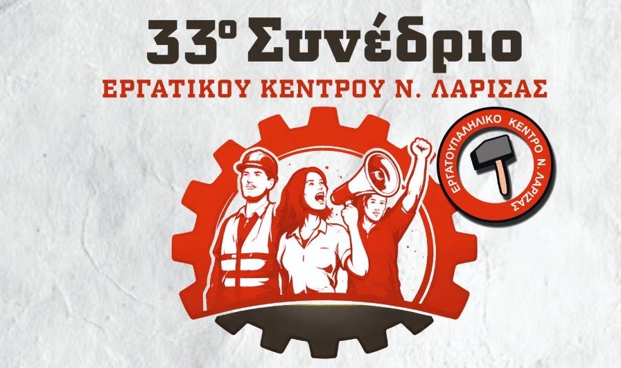 Αύριο Κυριακή, στις 9:30 π.μ. θα πραγματοποιηθεί το 33ο Εκλογοαπολογιστικό Συνέδριο των Αντιπροσώπων των Σωματείων του Εργατικού Κέντρου νομού Λάρισας. Οι εργασίες του Συνεδρίου θα γίνουν στην ισόγεια αίθουσα του ΕΚΝΛ «Τάκης Τσιόγκας» (Εργατικής Πρωτομαγιάς 6).