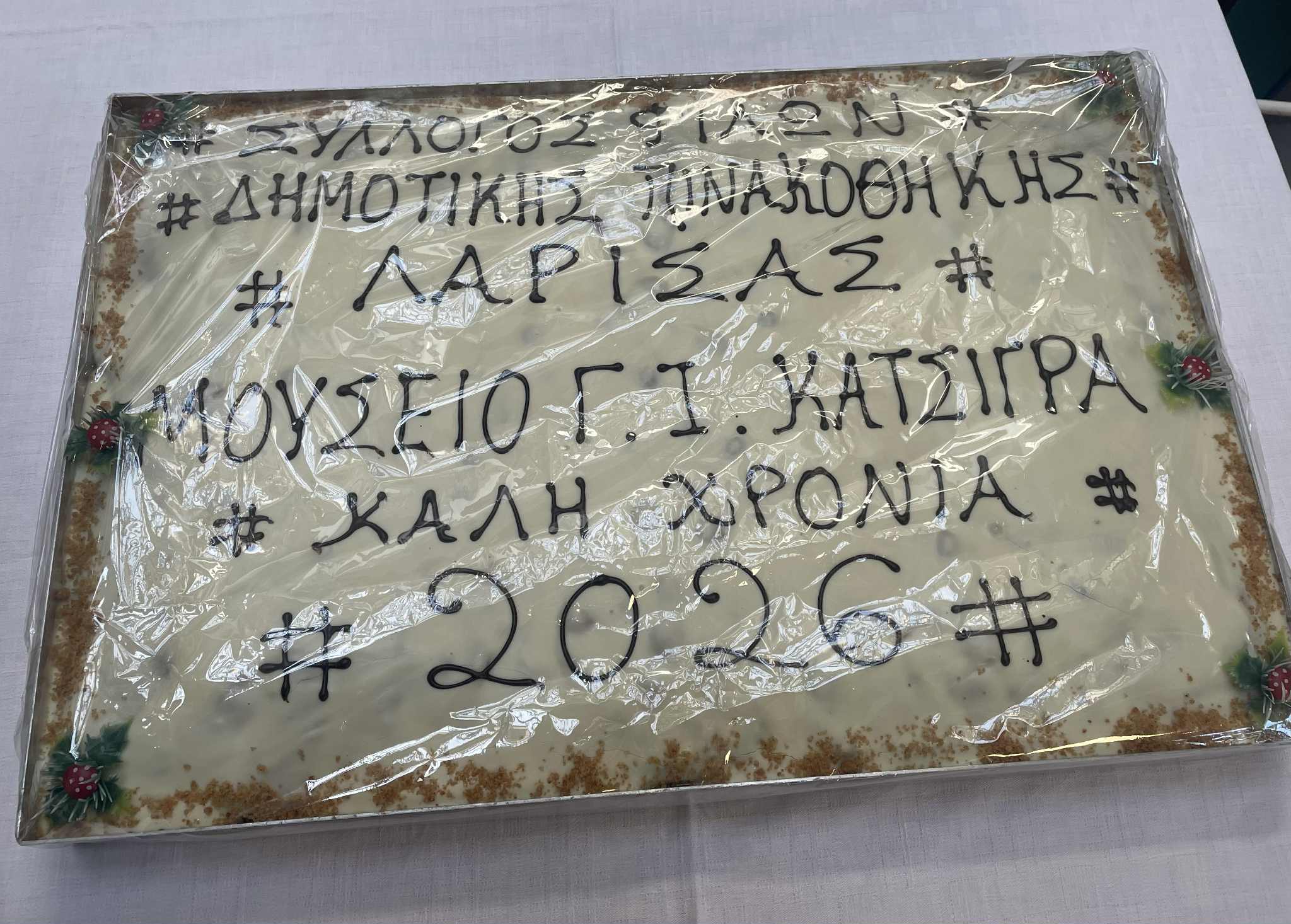 Την παραδοσιακή βασιλόπιτα έκοψε την Κυριακή 8 Φεβρουαρίου 2026 ο Σύλλογος «Φίλοι Δημοτικής Πινακοθήκης Λάρισας – Μουσείου Γ.Ι. Κατσίγρα (Δ.Π.Λ.-Μ.Γ.Ι.Κ.)», στο καφέ της Δημοτικής Πινακοθήκης Λάρισας – Μουσείου Γ.Ι. Κατσίγρα, σε ζεστό και δημιουργικό κλίμα.