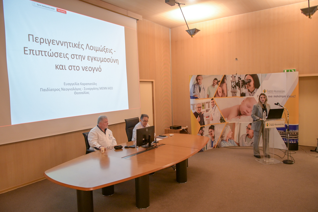 Η πρώτη εισήγηση, με θέμα «Περιγεννητικές λοιμώξεις – επιπτώσεις στην εγκυμοσύνη και στο νεογνό», παρουσιάστηκε από την Ευαγγελία Καραπατόλη, Παιδίατρο – Νεογνολόγο και Επιστημονική Συνεργάτη της Μονάδας Εντατικής Νοσηλείας Νεογνών (ΜΕΝΝ) του ΙΑΣΩ Θεσσαλίας. Κατά την ομιλία της αναλύθηκαν οι μηχανισμοί μετάδοσης των περιγεννητικών λοιμώξεων, οι επιπτώσεις τους στην κύηση και στο νεογνό, καθώς και η καθοριστική σημασία της πρόληψης, του προγεννητικού ελέγχου και της έγκαιρης διάγνωσης.