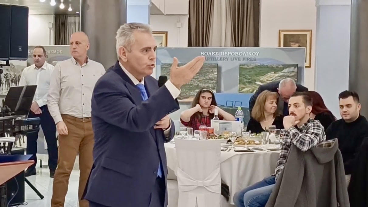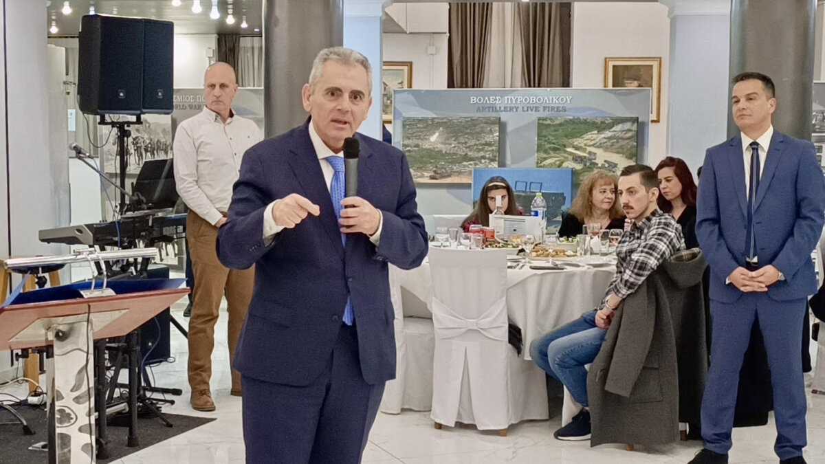 Ο Θεσσαλός πολιτικός, που είναι μέλος του Συνδέσμου, υπογράμμισε ότι «είμαστε σε μια εποχή γενικότερης αστάθειας, ρευστότητας, σε απρόβλεπτους καιρούς με αναθεωρητισμούς να αναβιώνουν στην γηραιά ήπειρο. Το κεκτημένο της ειρήνης δεν θεωρείται πια δεδομένο στην εποχή μας. Το διεθνές δίκαιο διαρκώς υποχωρεί και αποκτά μεγαλύτερη σημασία η ρήση του Θουκυδίδη ότι οι ισχυροί μπορούν να επιβάλουν αυτά που η ισχύς τους τους δίνει τη δυνατότητα και οι ανίσχυροι να υποχωρήσουν όσο η αδυναμία τους το επιβάλλει. Σε αυτούς, λοιπόν, τους ταραγμένους καιρούς, που ακόμη και μέσα στις βεβαιότητες που γνωρίζαμε, του ΝΑΤΟ στο οποίο ανήκουμε βλέπουμε να υπάρχουνε διχοστασίες. Αντιπαράθεση ανάμεσα στην Ευρώπη, τη γηραιά ήπειρο και τον νέο κόσμο, την Αμερική. Βλέπουμε πέραν της Ελλάδος και της Τουρκίας που ήταν δύο κράτη-μέλη του ΝΑΤΟ, που είχαν εσωτερικές αντιπαραθέσεις λόγω των μονίμων εξ ανατολών διεκδικήσεων της Τουρκίας, να έχουμε πια και με τον βασικό πόλο του ΝΑΤΟ, την Αμερική, διενέξεις με άλλα κράτη συμμαχικά του ΝΑΤΟ, όπως είναι η Δανία. Σε αυτόν, λοιπόν, τον κόσμο και σε αυτή τη ρευστότητα χρειαζόμαστε περισσότερο από ποτέ ισχυρές ένοπλες δυνάμεις και αυτό κάνει η παρούσα κυβέρνηση επενδύοντας τα τελευταία 6 χρόνια στην αποτρεπτική ικανότητα της χώρας. Η Ελλάδα αυτήν την ώρα έχει υπεροπλία και στη θάλασσα και στον αέρα. Με τις Belharra τις καινούργιες, ήρθε ο ‘‘Κίμων’’, τον υποδεχθήκαμε, και περιμένουμε και τις άλλες 3 Belharra, στη θάλασσα. Με τα Rafale, τα ανανεωμένα F-16, που έχουν ήδη παραληφθεί και, βεβαίως, τα F-35 που οσονούπω επίσης αναμένονται».