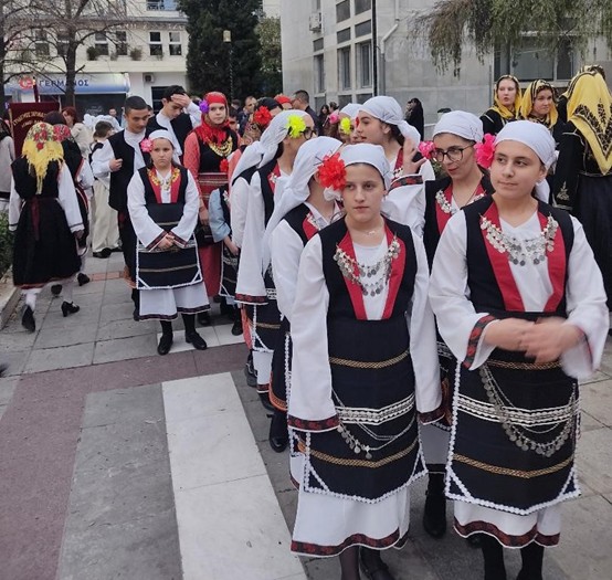 Τα χορευτικά τμήματα συγκεντρώθηκαν στην πλατεία Νομαρχίας και παρέλασαν έως τον χώρο της εκδήλωσης με τη συνοδεία ζωντανής παραδοσιακής μουσικής από τους μουσικούς της εκδήλωσης.