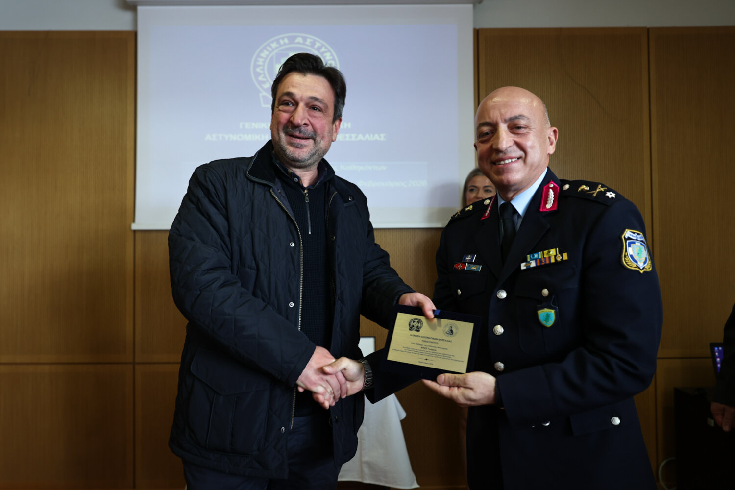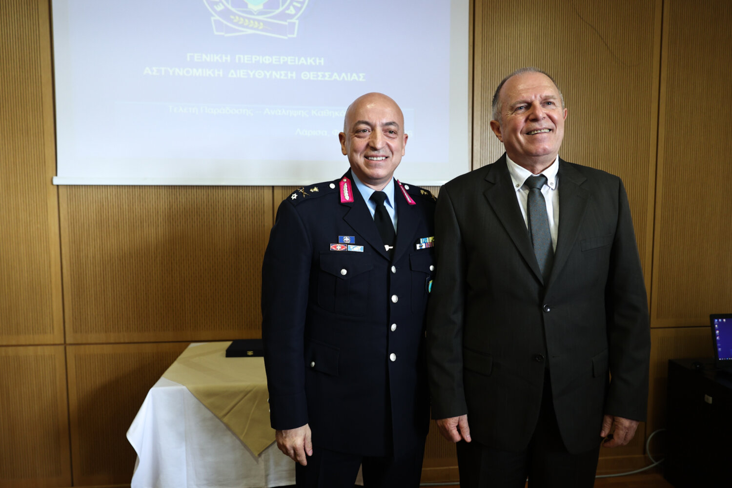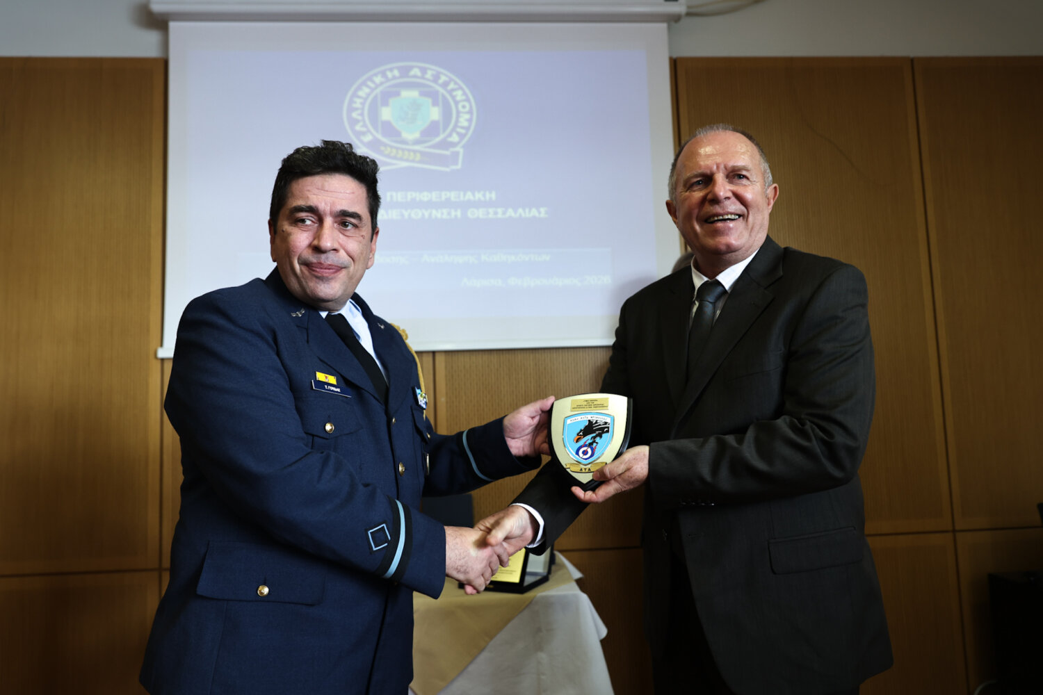 Στην τελετή, που διοργάνωσε το Γραφείο Τύπου και Ενημέρωσης της ΓΕΠΑΔ Θεσσαλίας, παρέστησαν ο δήμαρχος Λαρισαίων Θανάσης Μαμάκος, η αντιπεριφερειάρχης Λάρισας Μαρία Γαλλιού, η γενική γραμματέας της Αποκεντρωμένης Διοίκησης Θεσσαλίας  Ρένα Καραλαριώτου, και αξιωματικοί από όλα τα σώματα ασφαλείας.
