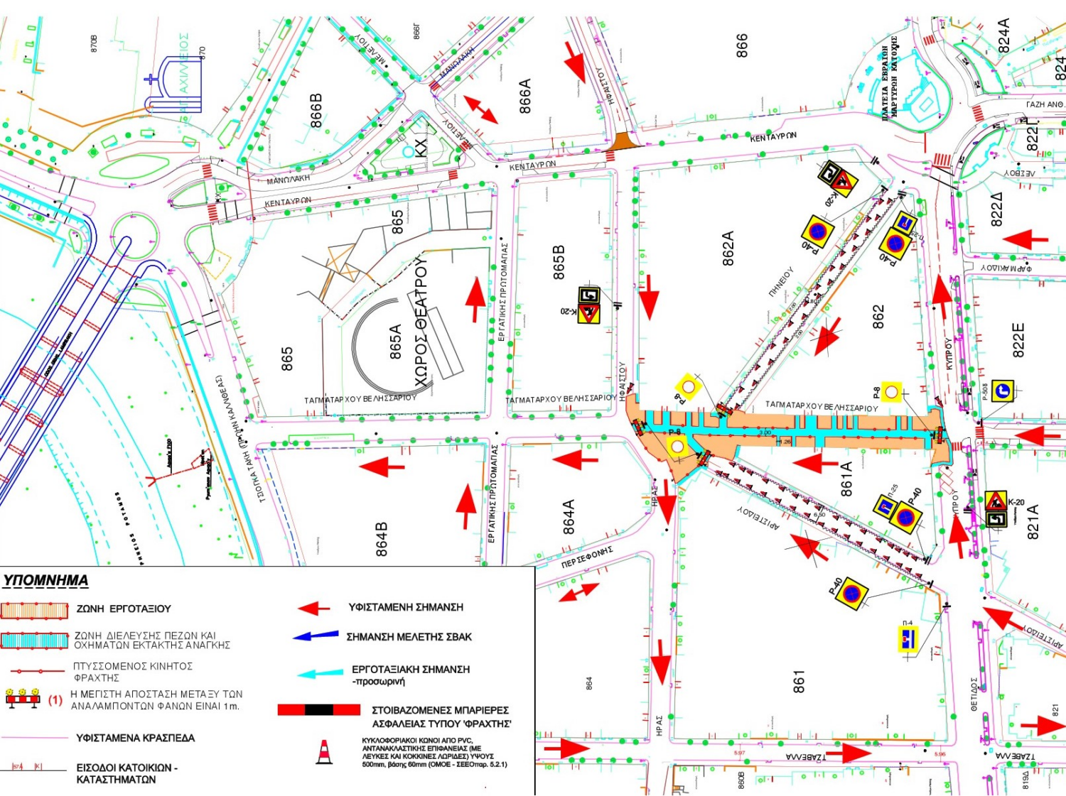 Για τους λόγους αυτούς θα εφαρμοστούν οι προσωρινές κυκλοφοριακές ρυθμίσεις που προβλέπονται για το στάδιο Α15 του ΦΕΚ 2474/Β/26-4-2024 που αφορά τις προσωρινές κυκλοφοριακές ρυθμίσεις (εργοταξιακού χαρακτήρα) για το παραπάνω έργο από αύριο, Τετάρτη 11 Φεβρουαρίου ως και την Τετάρτη, 18 Φεβρουαρίου 2026, καθ’ όλο το 24ωρο, ενώ ταυτόχρονα παραμένουν σε ισχύ οι προσωρινές κυκλοφοριακές ρυθμίσεις που αφορούν το στάδιο Α13 (ανακατασκευή της οδού Ταγματάρχου Βελησσαρίου από την οδό Κύπρου έως την οδό Ηφαίστου).
