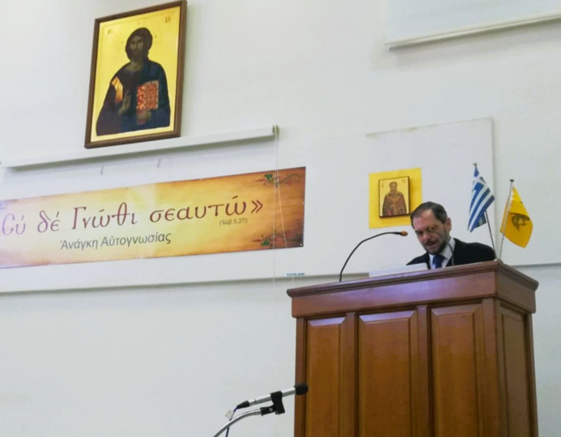 * Τον καθηγητή του ΑΠΘ παρουσίασε ο Γραμματέας της «Χριστιανικής Εστίας», ιατρός κ. Ιωάννης Καλούσης, ενώ χαιρετισμούς απηύθυναν ο Πρόεδρος της «Εστίας», εκπαιδευτικός κ. Θωμάς Παπαδημητρίου και ο Δ/ντής του Προτύπου Γενικού Λυκείου Λάρισας κ. Χάρης Ανδρεόπουλος, εκ μέρους των θεολόγων καθηγητών.