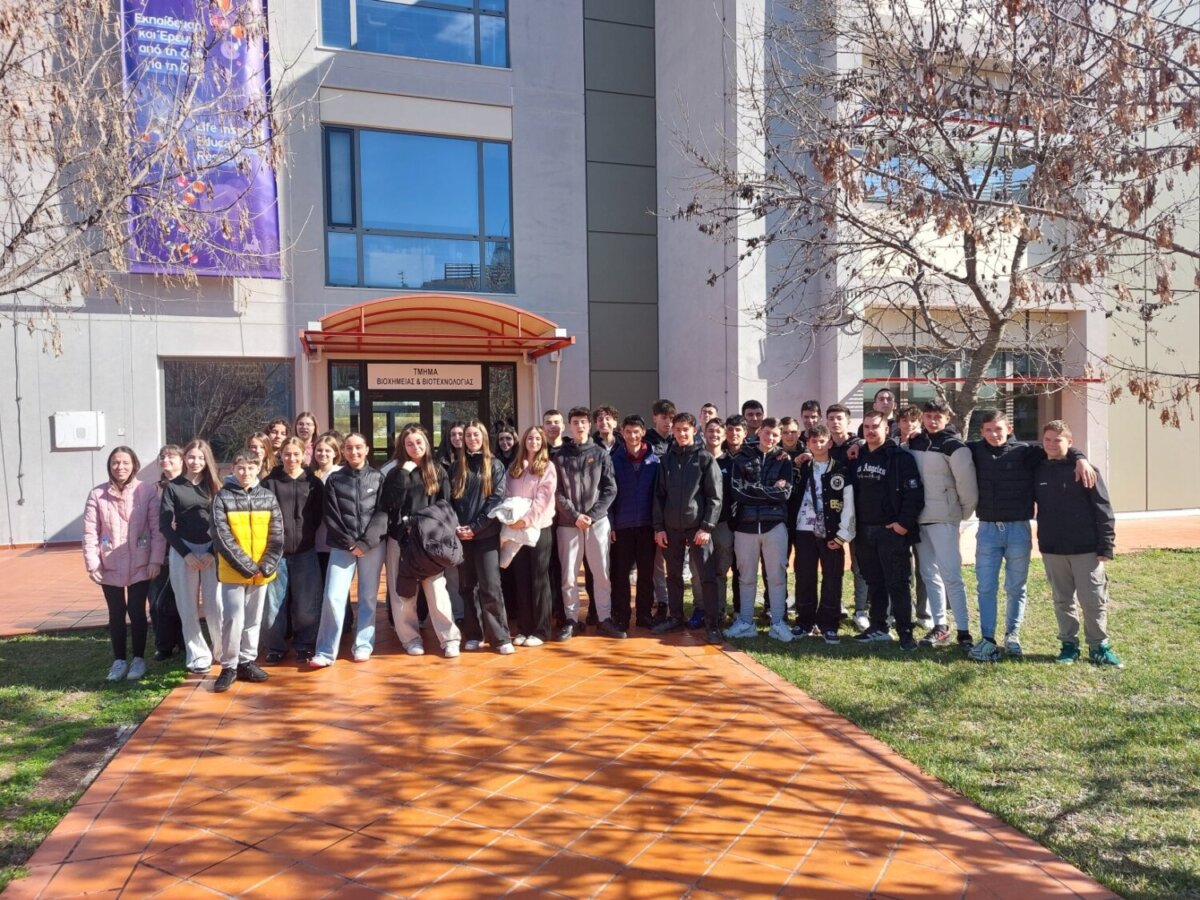 Οι μαθητές της Γ’ του Γυμνασίου Νίκαιας Λάρισας, επισκέφθηκαν το Τμήμα Βιοχημείας & Βιοτεχνολογίας για να παρακολουθήσουν τις δραστηριότητες που είχαν ετοιμάσει για αυτούς καθηγητές και φοιτητές του Τμήματος, στα πλαίσια του προγράμματος “Μικροί Βιοχημικοί“.