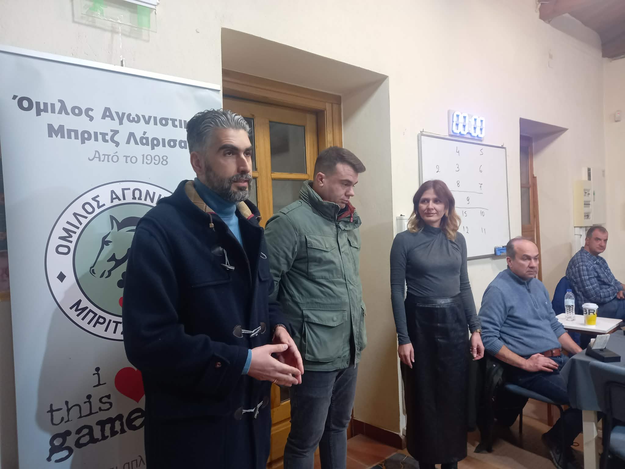 Στον αγώνα παρευρέθηκαν ο Αντιδήμαρχος Πολιτισμού Δήμου Λαρισαίων, Θωμάς Ρετσιάνης, καθώς και ο πρόεδρος και η εκπρόσωπος του Συλλόγου Αργιθεατών Ν. Λάρισας, Κώστας Σιατραβάνης και Νανά Μαυραντζά, οι οποίοι αφού συνομίλησαν με τους αθλητές, είχαν την ευκαιρία να γνωρίσουν καλύτερα το άθλημα του Μπριτζ.