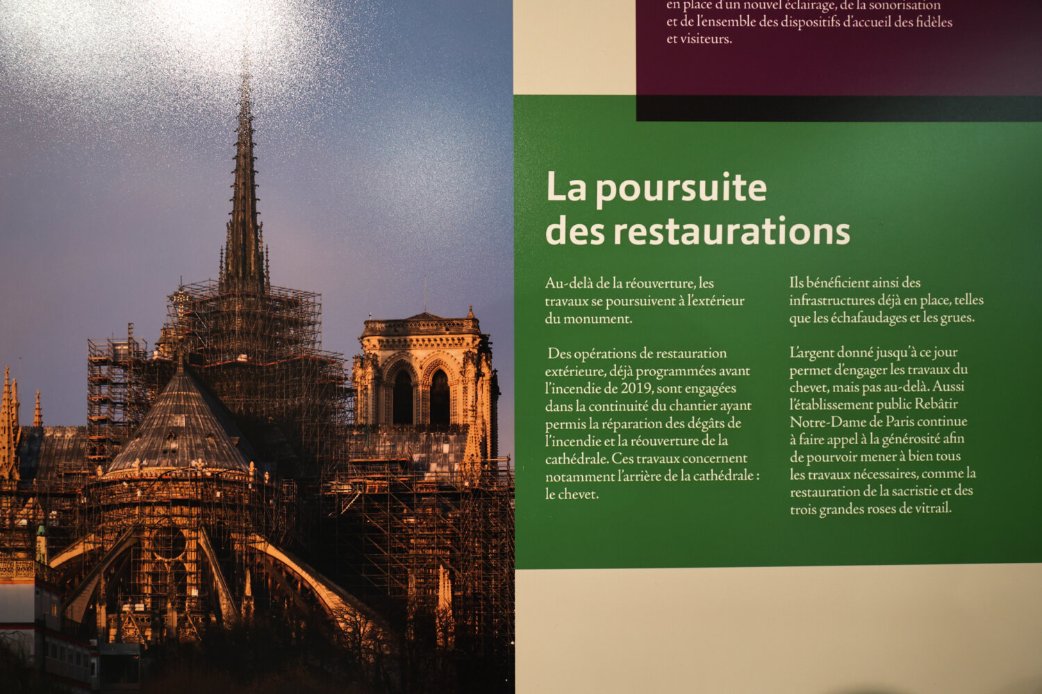 Η έκθεση έχει σχεδιαστεί από τον Δημόσιο Γαλλικό Οργανισμό Rebâtir Notre-Dame και παρουσιάζεται στη γαλλική γλώσσα με ελληνική μετάφραση, απευθυνόμενη τόσο σε φίλους της αρχιτεκτονικής όσο και σε κάθε επισκέπτη που επιθυμεί να γνωρίσει σε βάθος την ιστορία και την αξία του μνημείου.