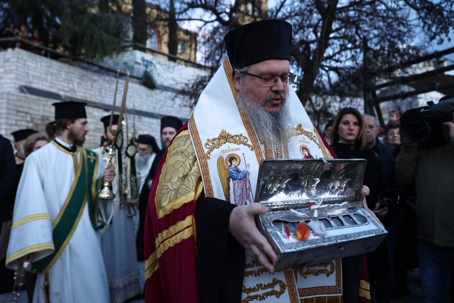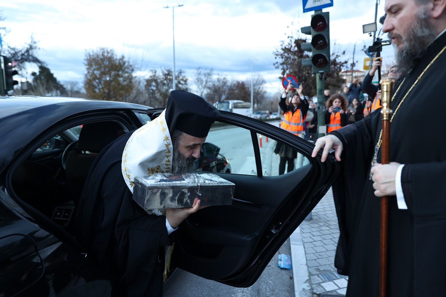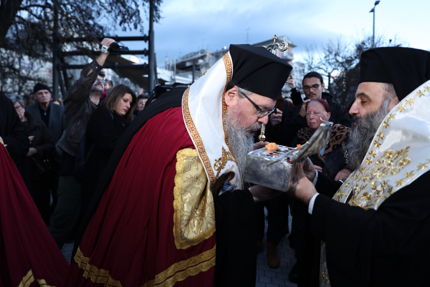Η υποδοχή πραγματοποιήθηκε μέσα σε κλίμα βαθιάς κατάνυξης και πνευματικής αγαλλίασης, παρουσία του Σεβασμιωτάτου Μητροπολίτη Λαρίσης και Τυρνάβου κ. Ιερωνύμου, του ιερού κλήρου και πλήθους πιστών που έσπευσαν να προσκυνήσουν το ιερό σέβασμα.
