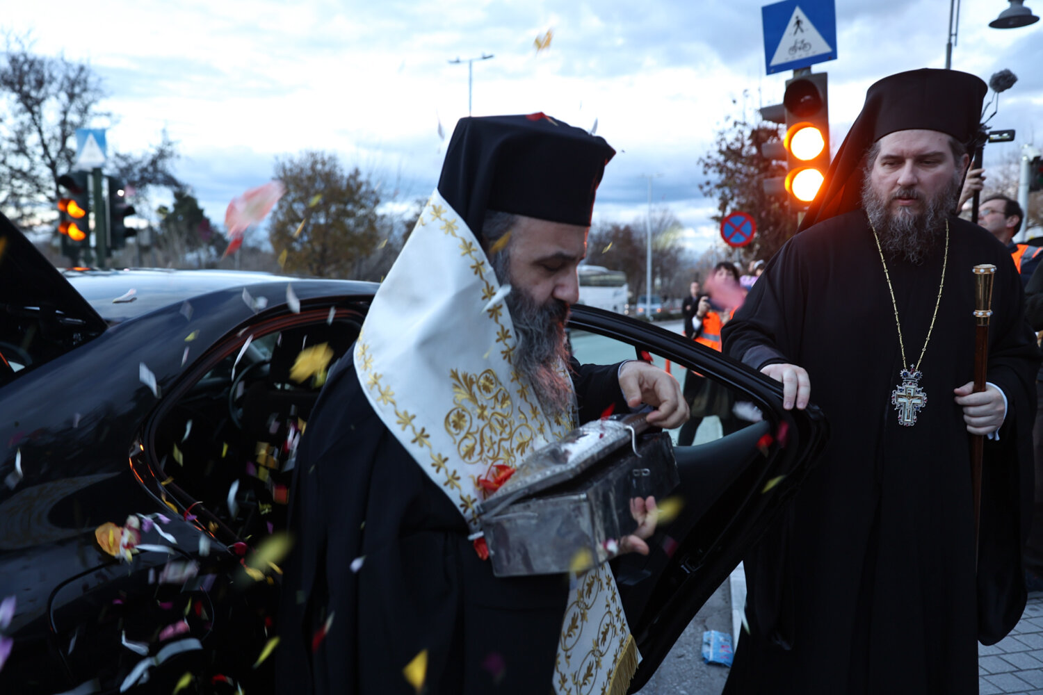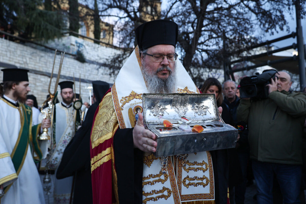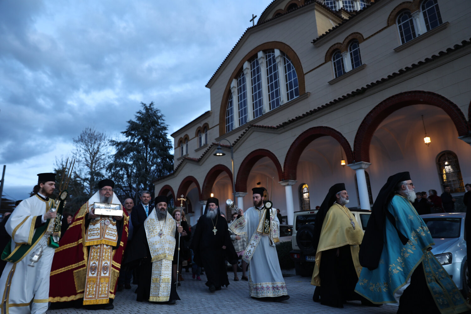 Η υποδοχή πραγματοποιήθηκε μέσα σε κλίμα βαθιάς κατάνυξης και πνευματικής αγαλλίασης, παρουσία του Σεβασμιωτάτου Μητροπολίτη Λαρίσης και Τυρνάβου κ. Ιερωνύμου, του ιερού κλήρου και πλήθους πιστών που έσπευσαν να προσκυνήσουν το ιερό σέβασμα.