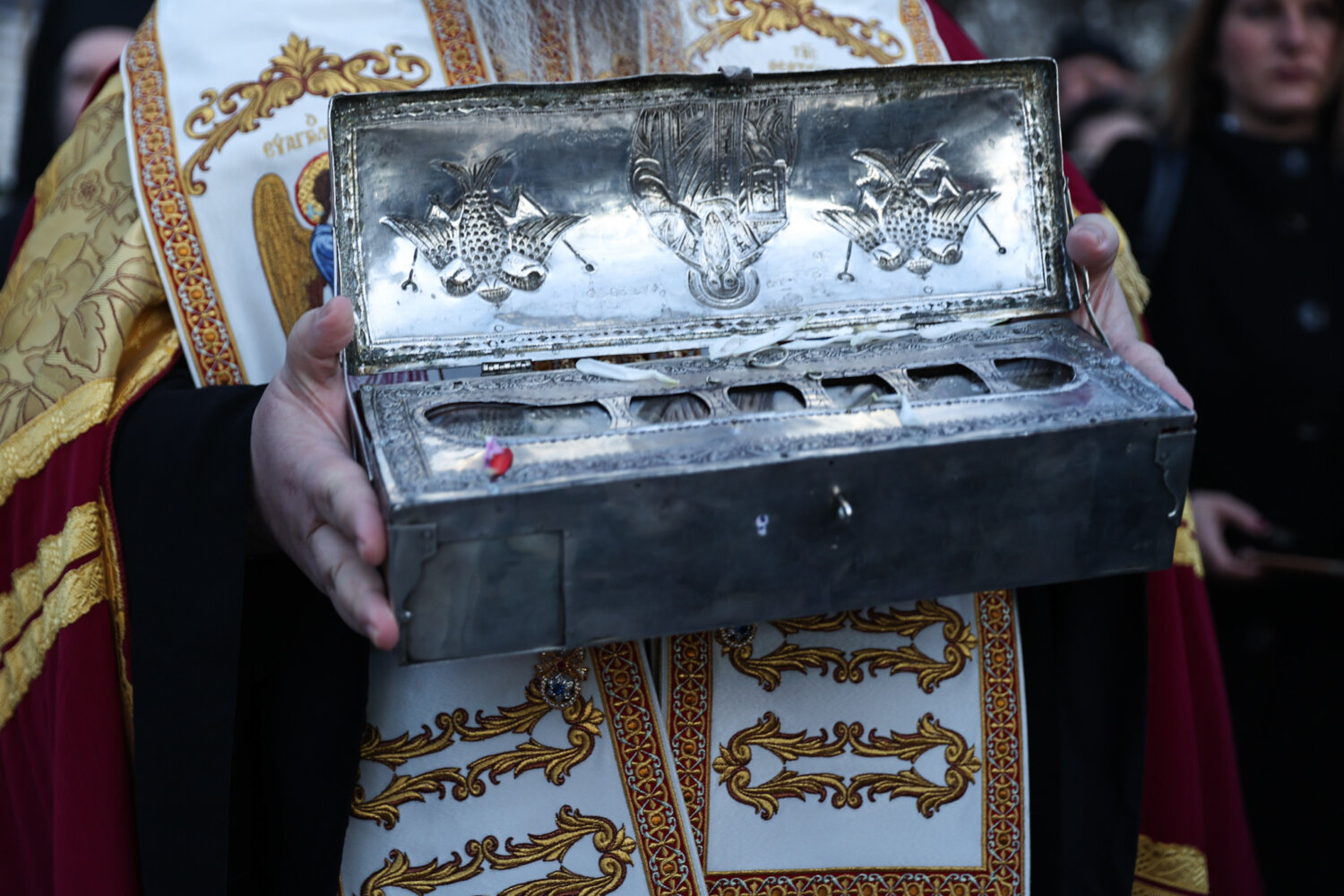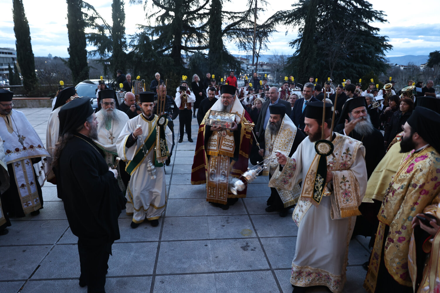 Με ιδιαίτερη χαρά και συγκίνηση υποδέχθηκε τη Δευτέρα 16 Φεβρουαρίου ο λαός της Λάρισας την Τιμία δεξιά Χείρα του Μέγα Βασιλείου, στον Ιερό Μητροπολιτικό Ναό του Αγίου Αχιλλίου.