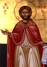 2. Το πάντιμον λείψανον του Θεοδώρου, πιστοί, ενδόξως τιμήσωμεν ως θησαυρών τιμαλφή, και πάντες βοήσωμεν: Σώσον εκ των κινδύνων τους πιστώς σε υμνούντας, ως πότε σύ ερρύσω εκ πανώλους την πόλιν και πάντας περιφρούρησον ταις ικεσίαις σου.