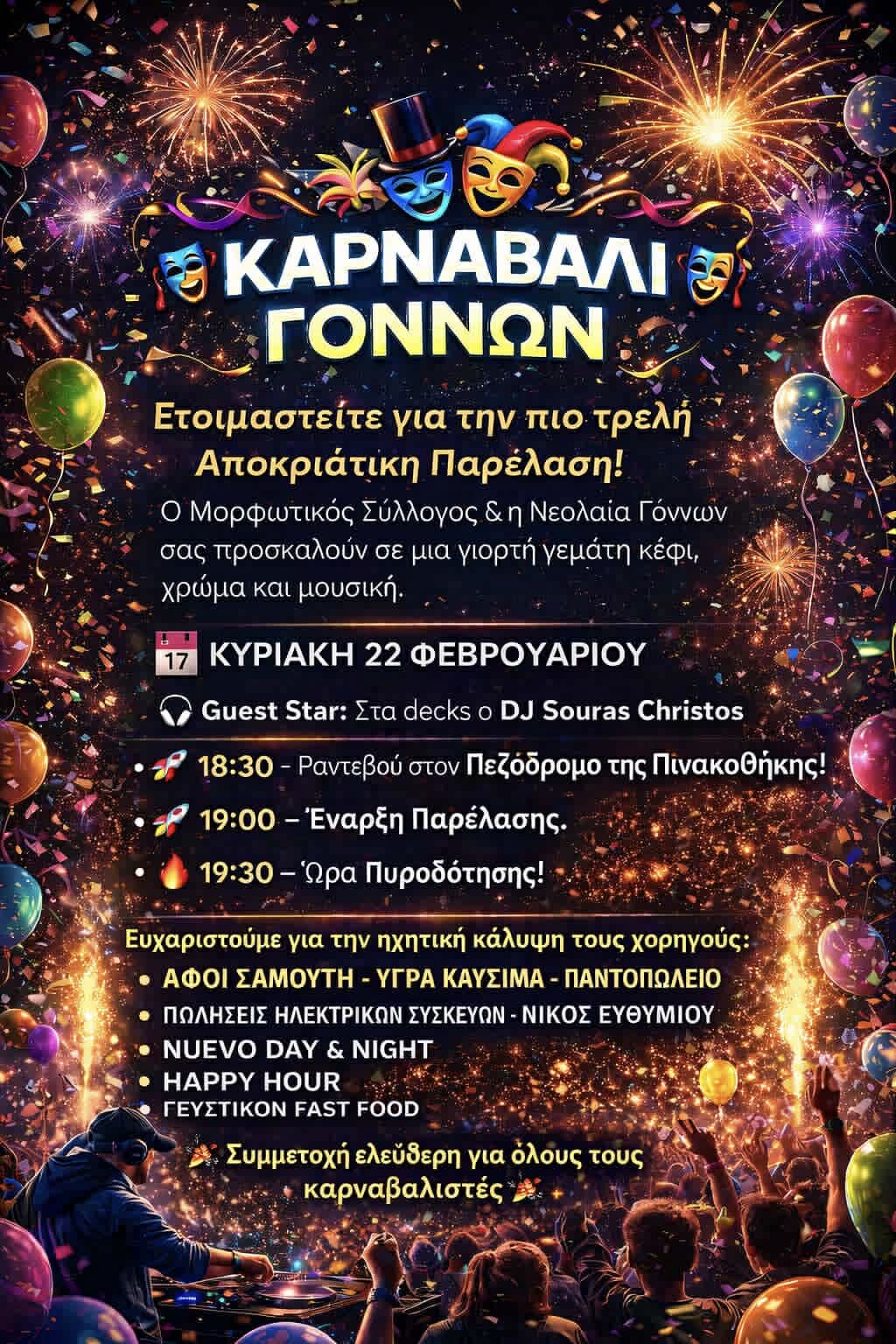 Πρόγραμμα αποκριάτικες εκδηλώσεων στους Γόννους.