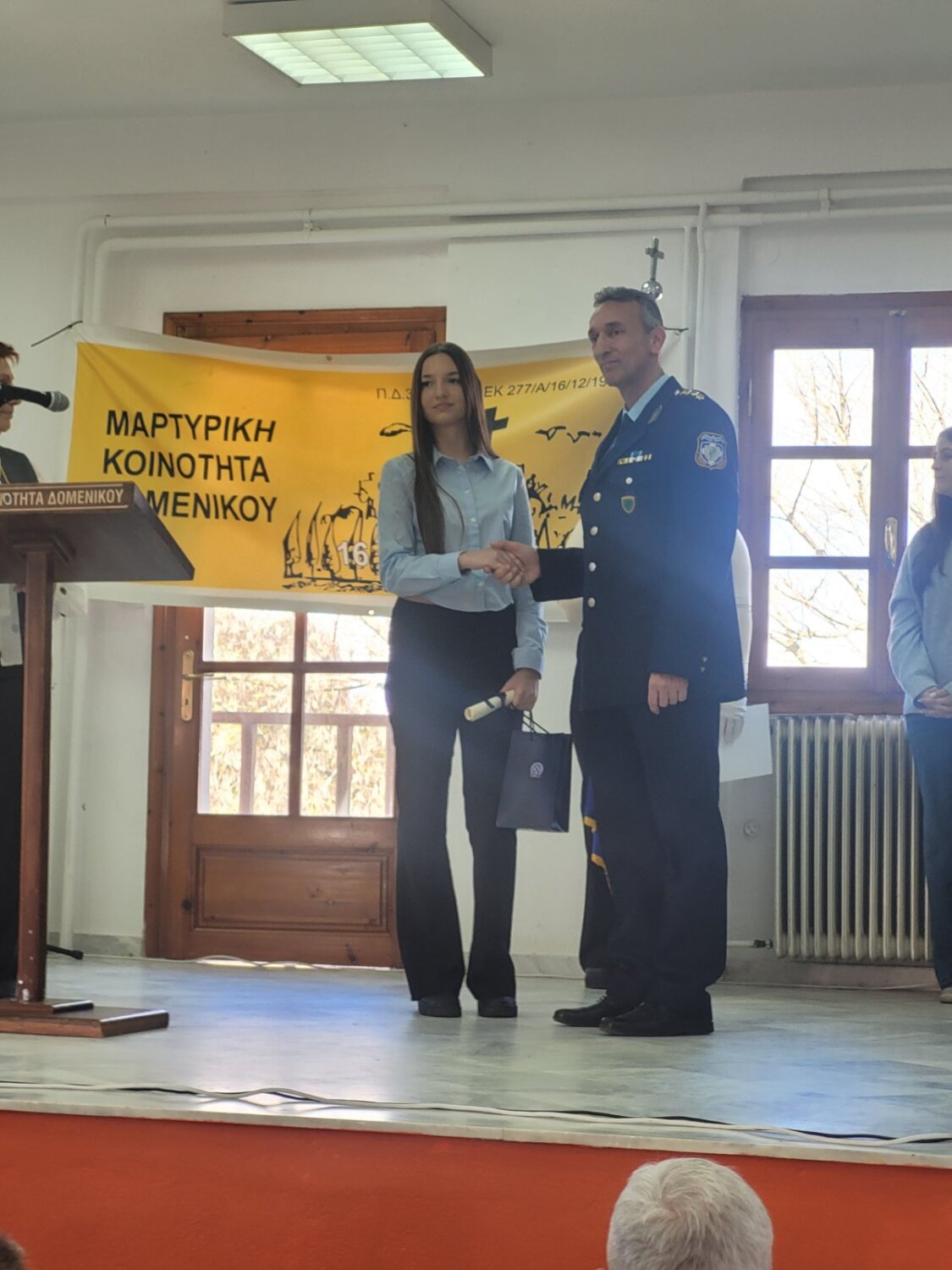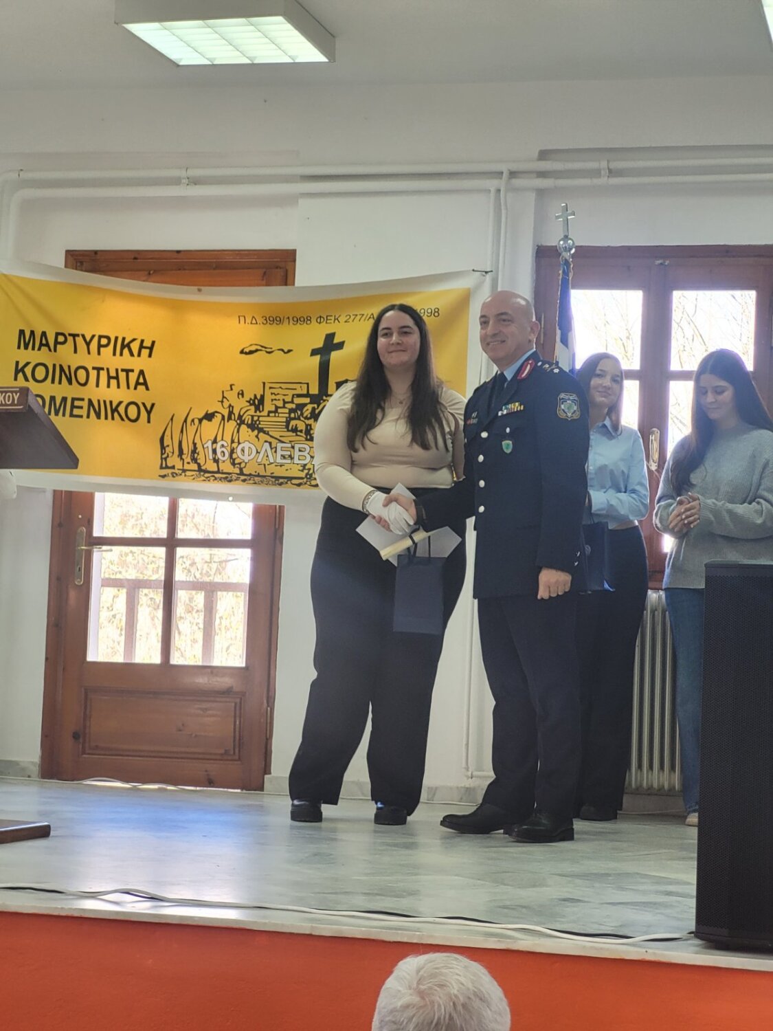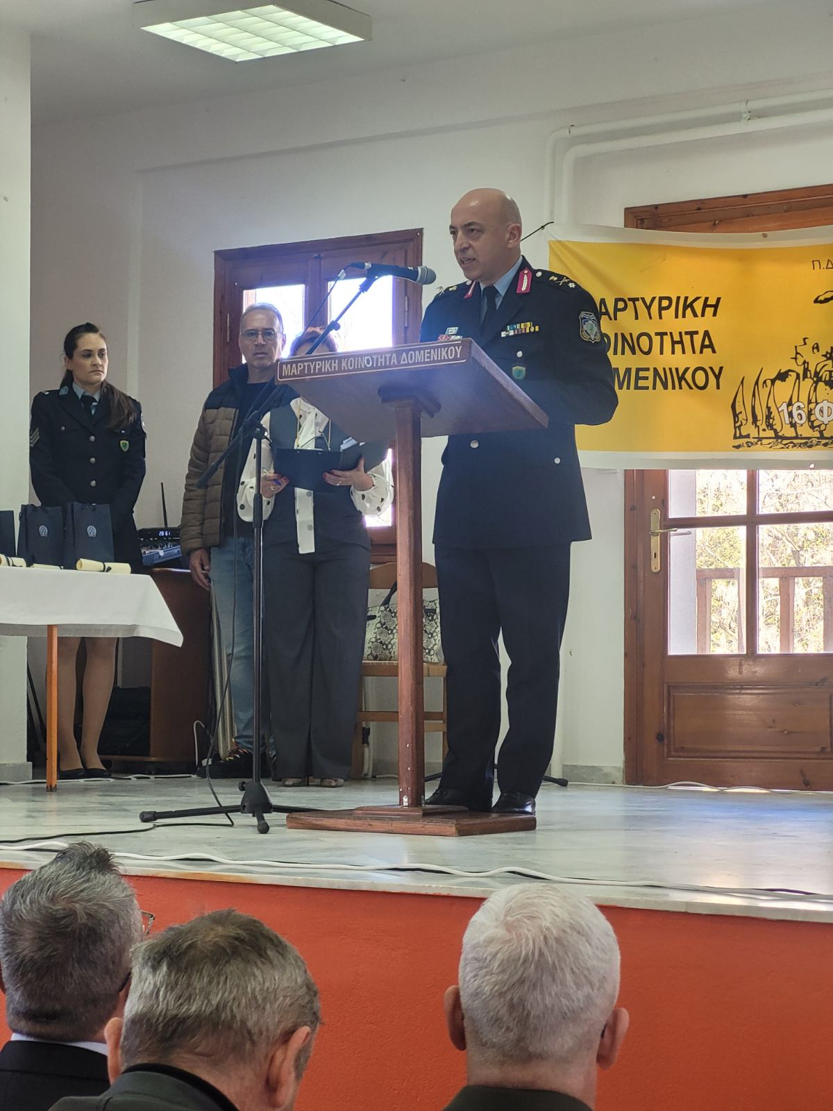Ακολούθως, στο Παναγιώτειο Πνευματικό Κέντρο Δομένικου, ο κ. Γενικός πραγματοποίησε σχετική ομιλία, ενώ, στη συνέχεια, απένειμε βραβεία σε (7) μαθήτριες/ες του Γυμνασίου και Λυκείου Δομένικου που αρίστευσαν κατά το σχολικό έτος 2024 – 2025, δίνοντάς τους, παράλληλα, και αναμνηστικά δώρα.