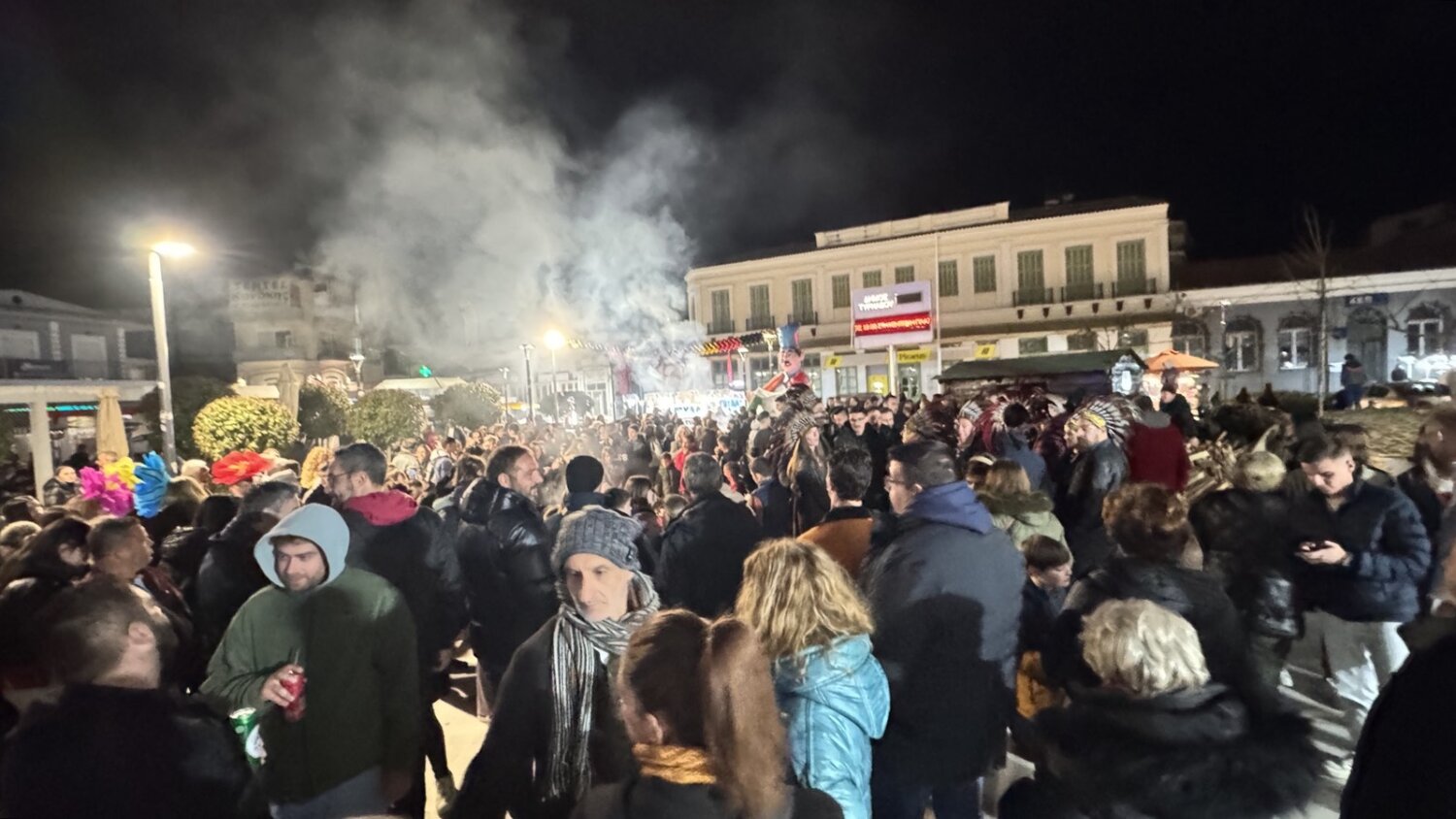 Στο κέντρο της πλατείας συγκεντρώθηκε πλήθος κόσμου γύρω από τη φωτιά, ενώ η πίστα ήταν κατάμεστη από χορευτές κάθε ηλικίας με ντόπιους και επισκέπτες να απολαμβάνουν τη ζωντάνια της βραδιάς. Τα καταστήματα επίσης ήταν γεμάτα, δημιουργώντας μια ατμόσφαιρα γιορτής που πλημμύρισε ολόκληρη την πόλη.