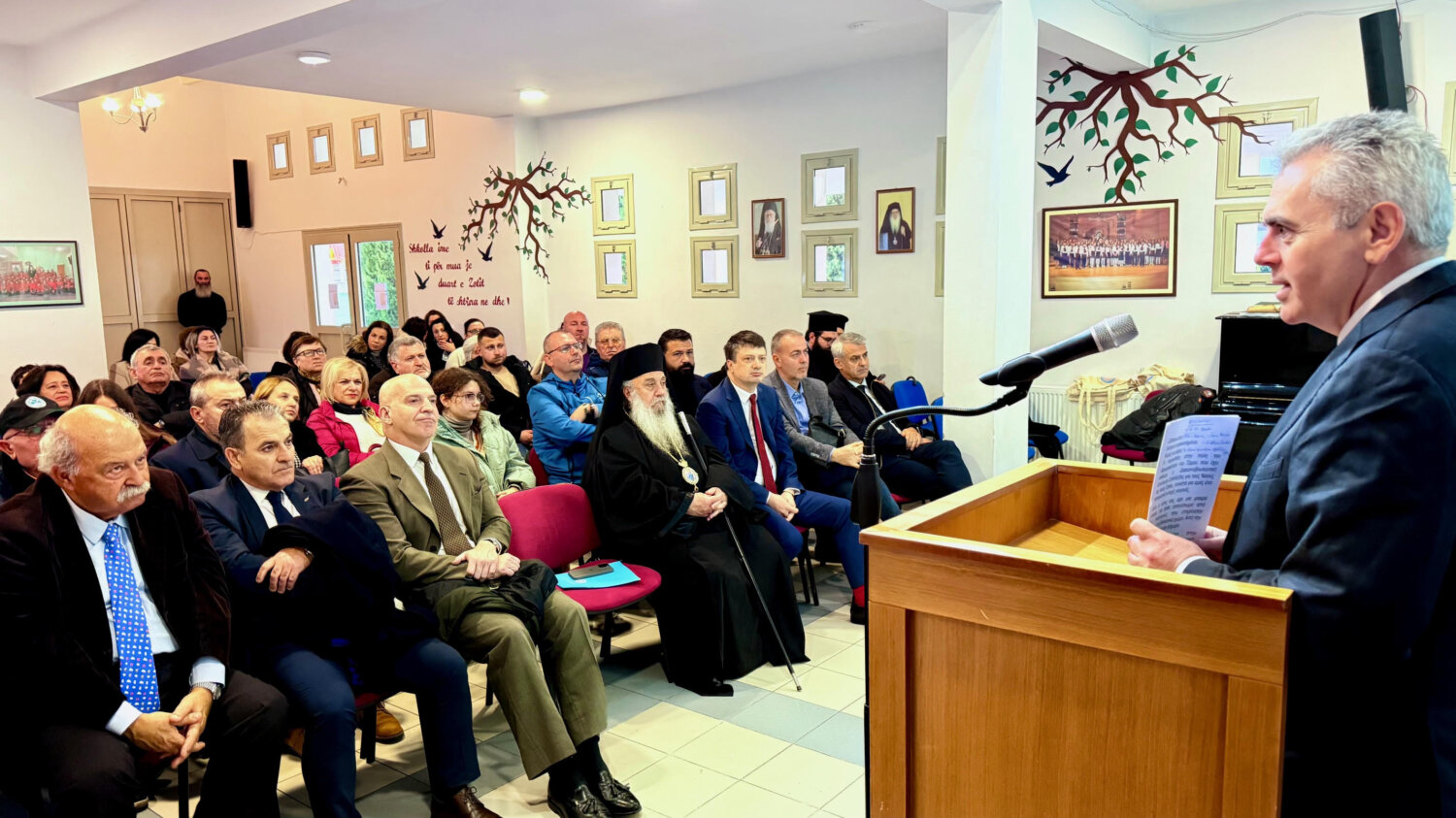 Ο Μ. Χαρακόπουλος στο βήμα της εκδήλωσης στο Αργυρόκαστρο: