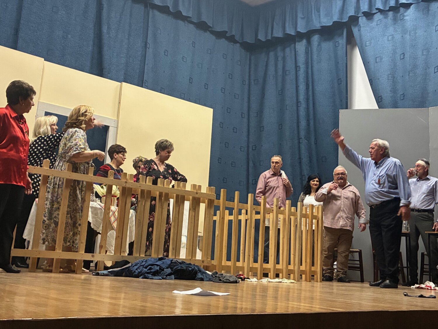Στην παράσταση συμμετείχαν οι ερασιτέχνες ηθοποιοί: Αλεξοπούλου Κατερίνα, Αναστασίου Τζένη, Γεωργούσης Γεώργιος, Γκάνα Μαρία, Γιαννίκη Βασιλική, Γιολδάση Χριστίνα, Γκουντής Μιχαήλ, Ευαγγέλου Δήμητρα, Ιωάννου Ασημίνα, Καλούδη Εύη, Κρίτσα Δήμητρα, Μπάντελη Μαρία, Παράσχη Σοφία, Πασχάλης Βασίλειος, Σιδηροπούλου Μαγδαληνή, Χαλέπα Ευαγγελία, Χαλκιάς Αθανάσιος, Χρηστούλα Πόπη.